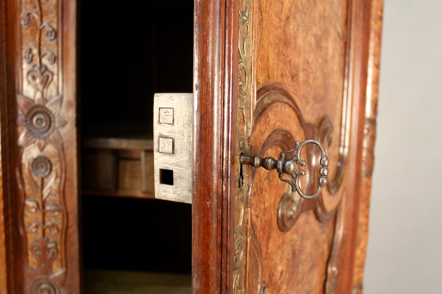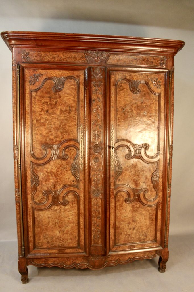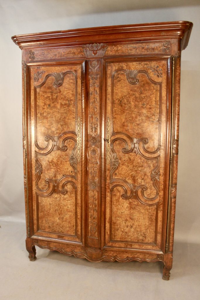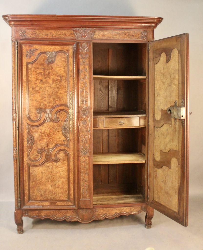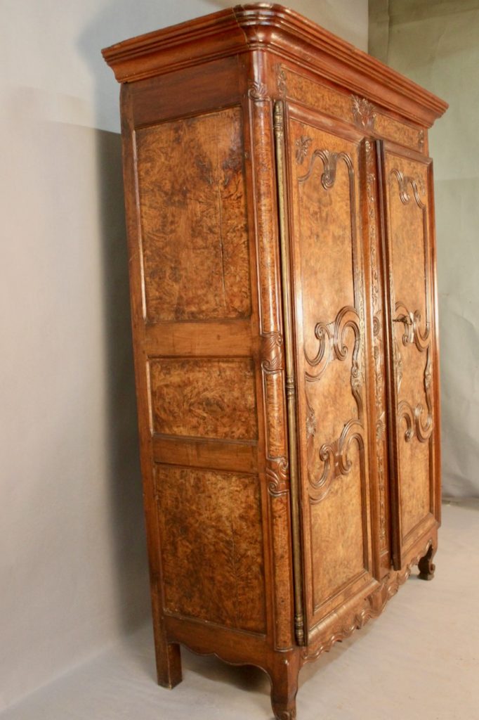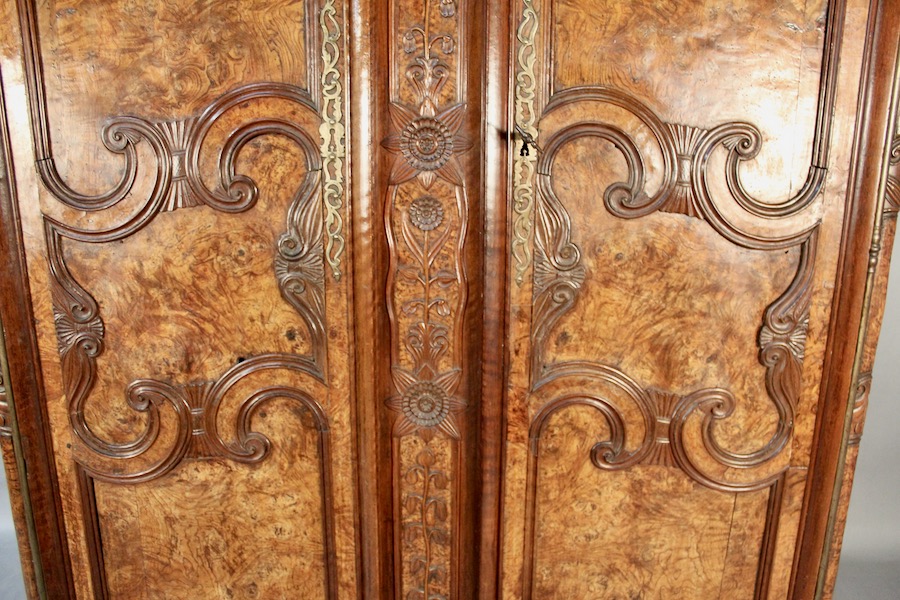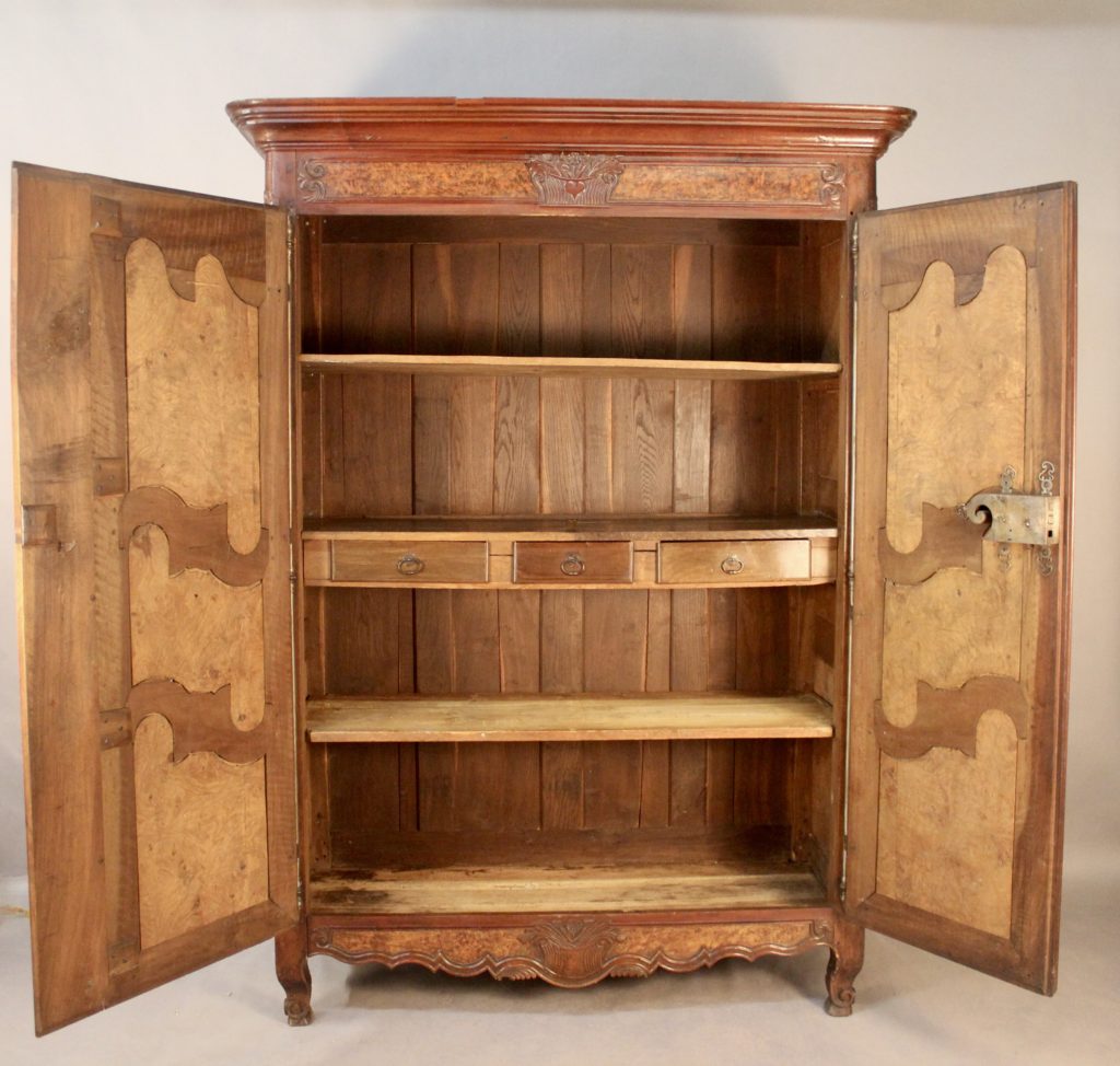 Belle Armoire bressane de mariage en noyer et  loupe de frêne, début XIXème