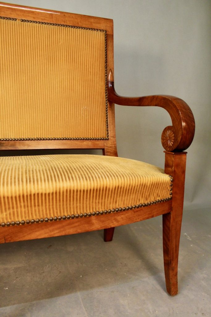 Elégante banquette d'époque Restauration (début XIXème) en acajou blond.