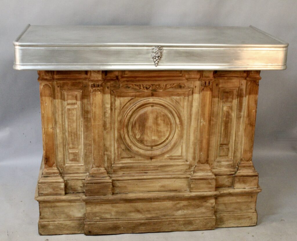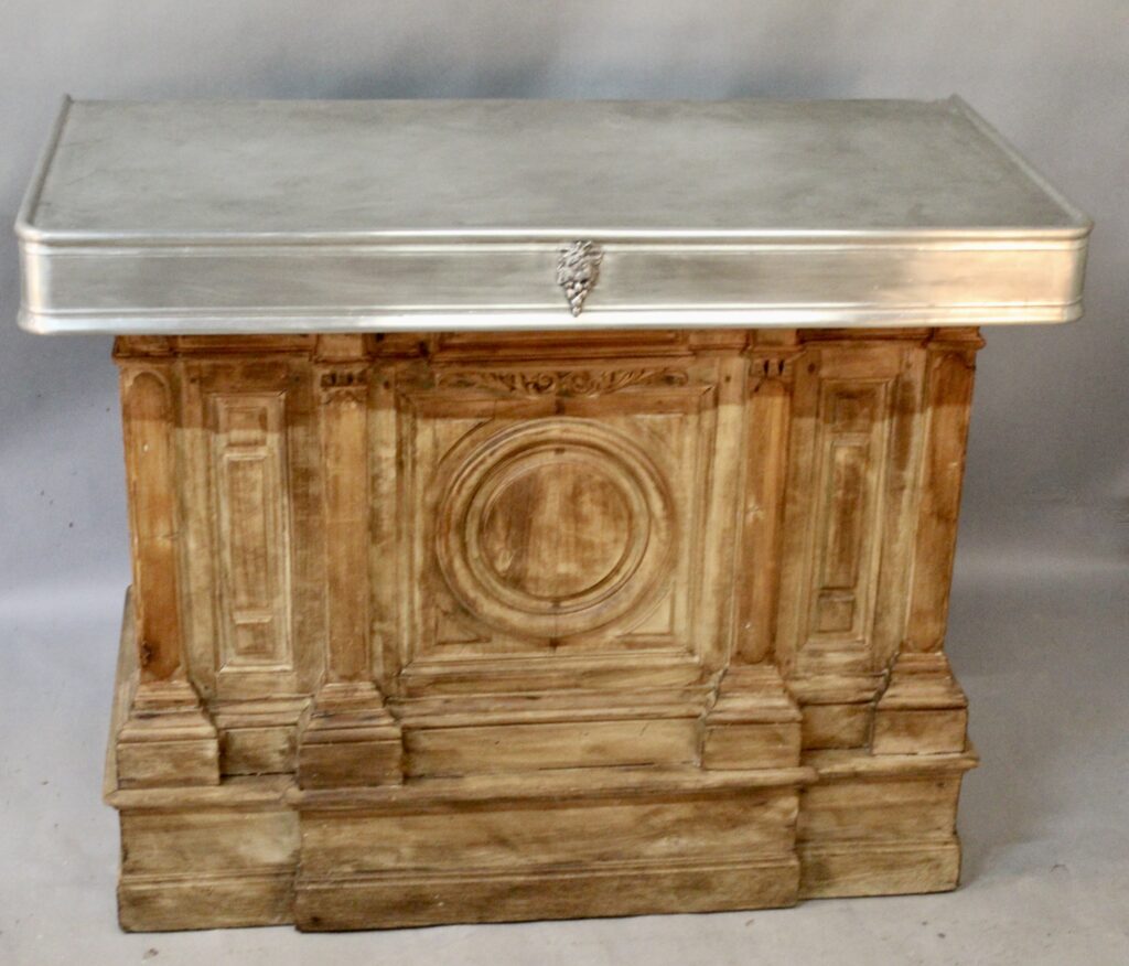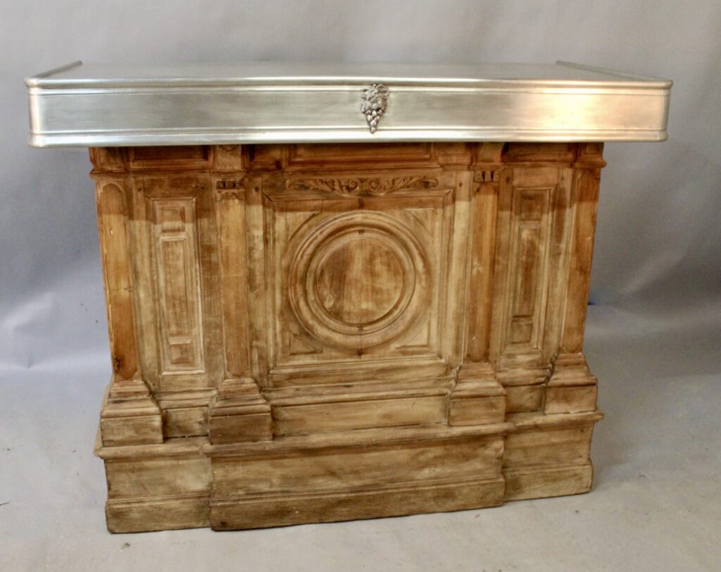 Le dessus en étain est mouluré, avec une grappe de raisin en façade.