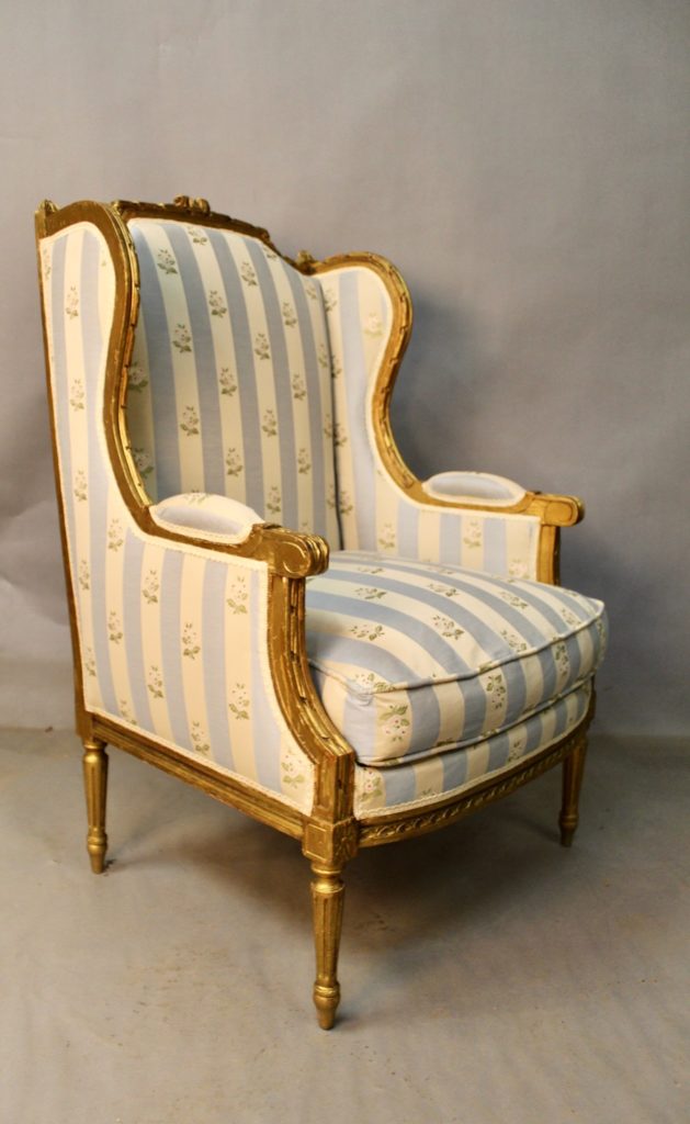 Bergère à Oreilles De Style Louis XVI En Bois Doré