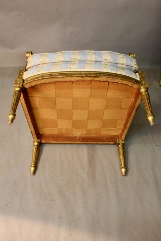 Elle a été entièrement retapissée et regarnie avec le tissu d'origine dont nous disposions un rouleau.