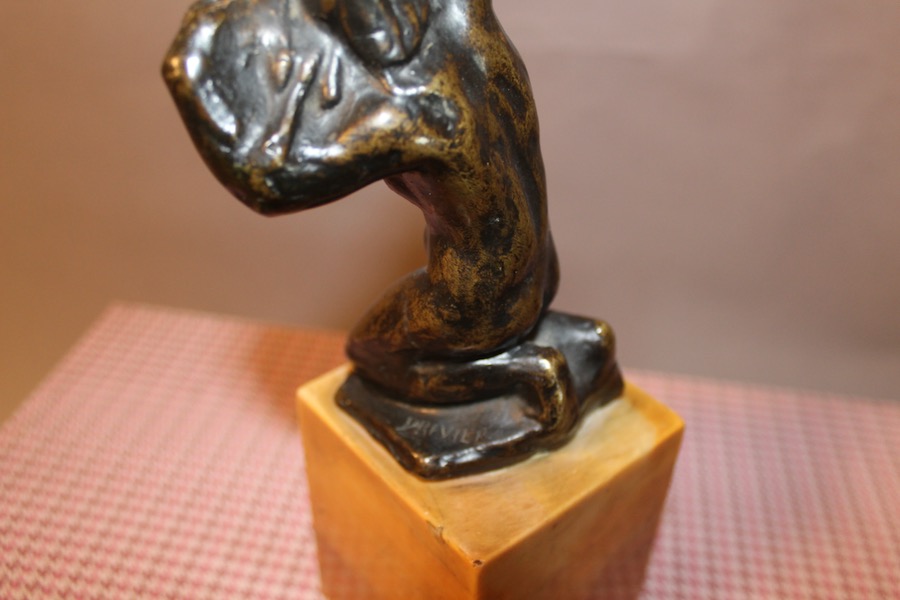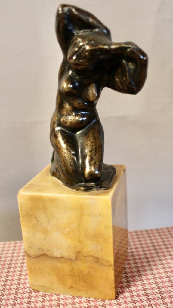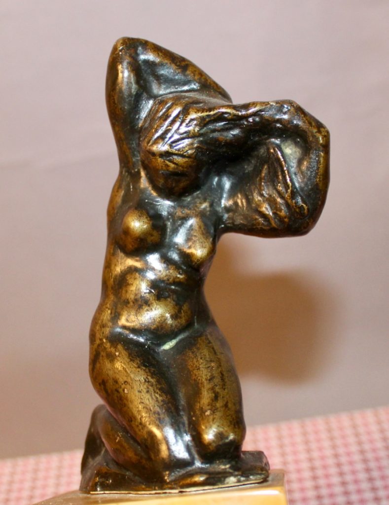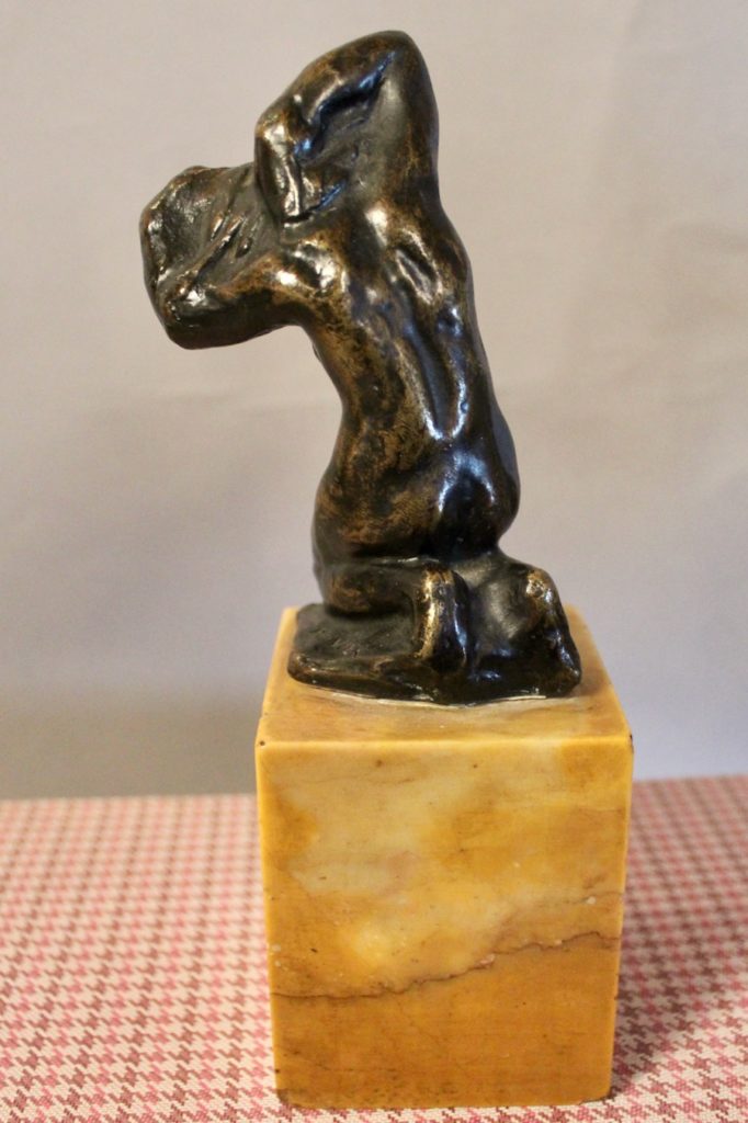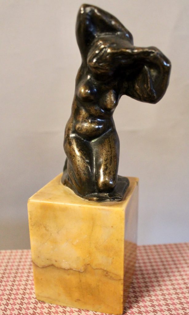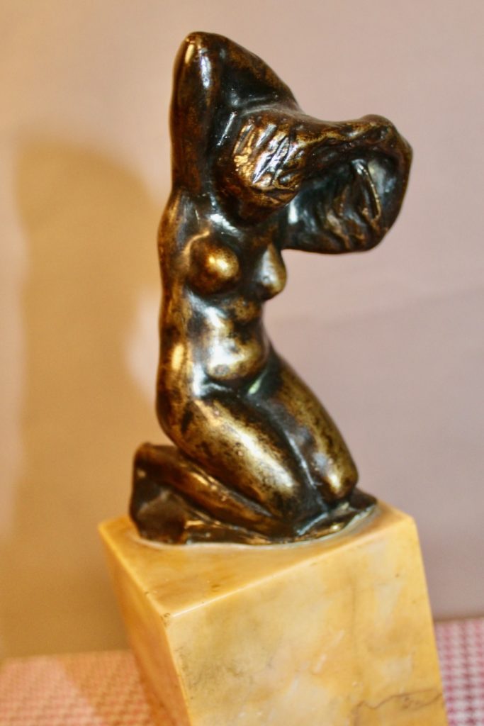 Bronze à patine brune représentant la "Baigneuse se nouant les cheveux"