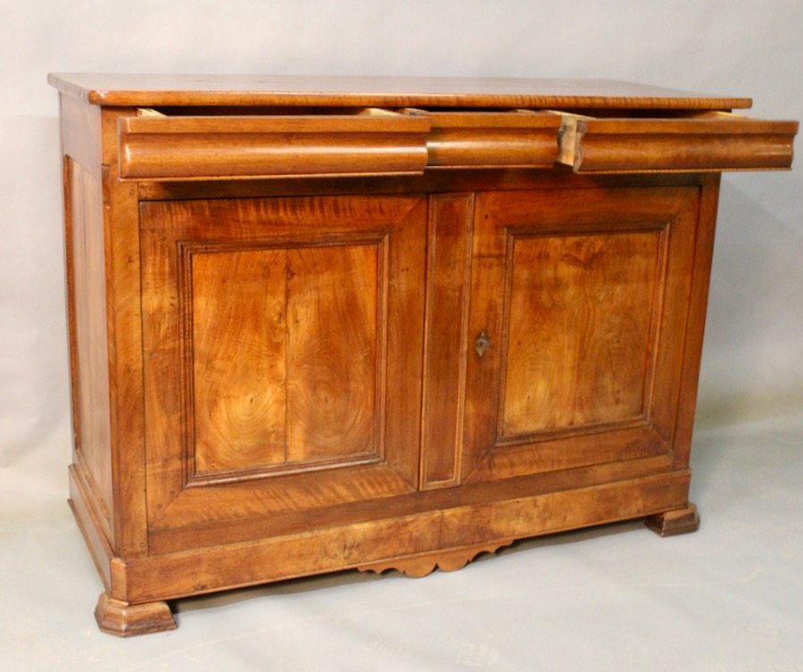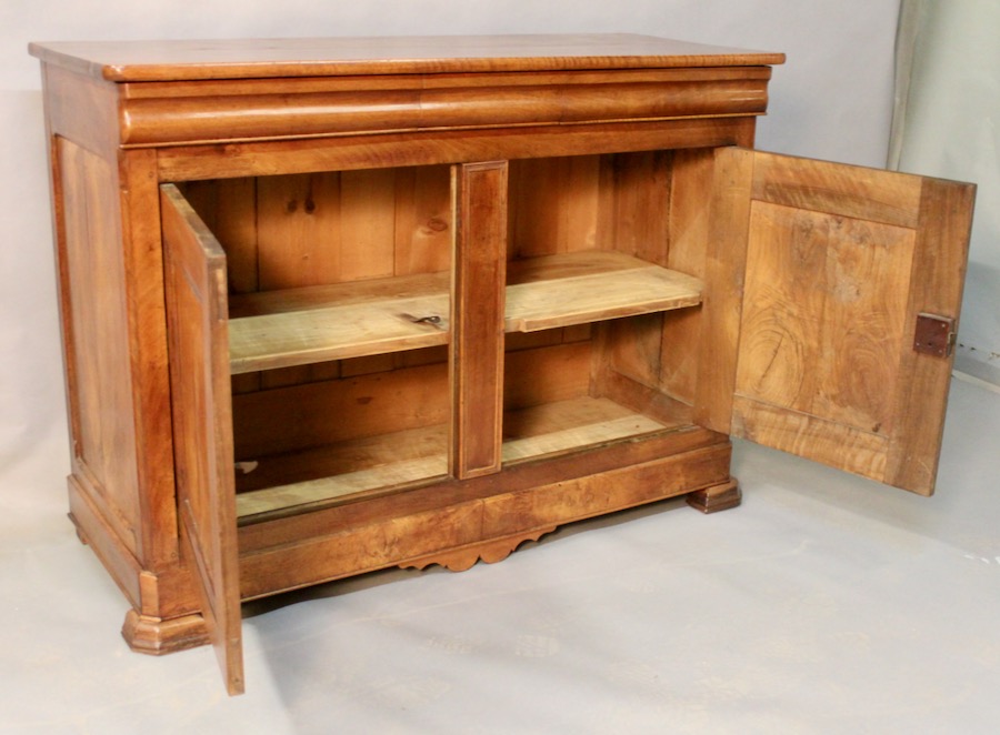 Buffet en noyer d'époque Louis Philippe ouvrant par deux portes séparées par un faux dormant.