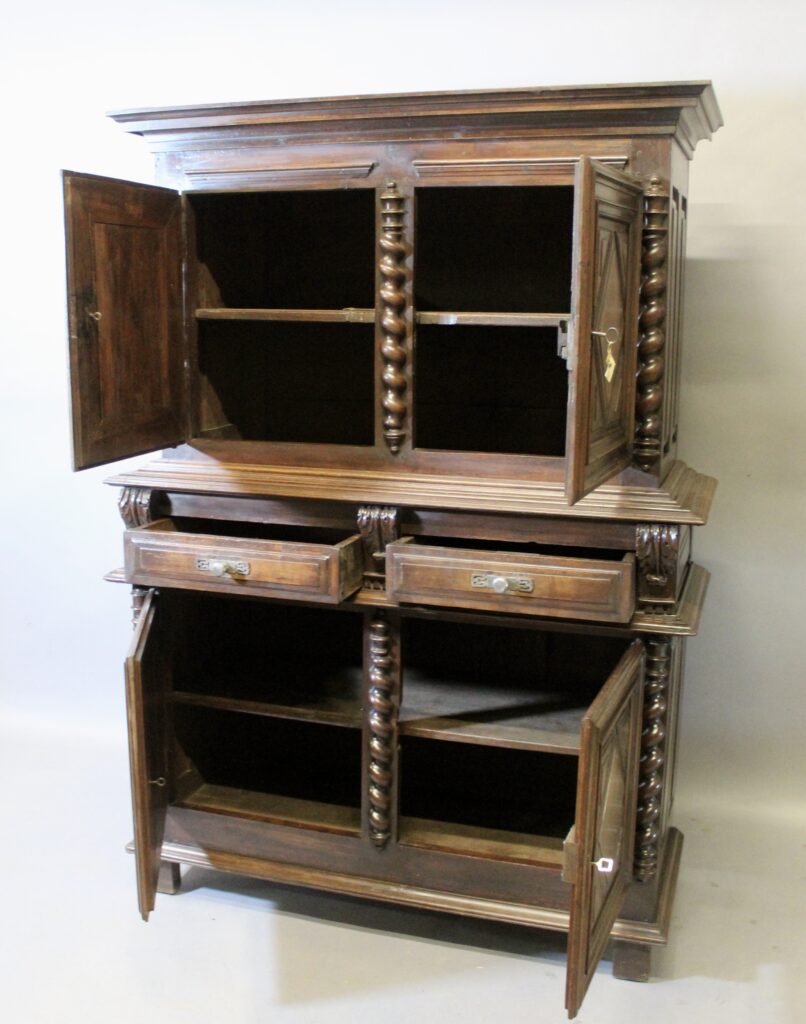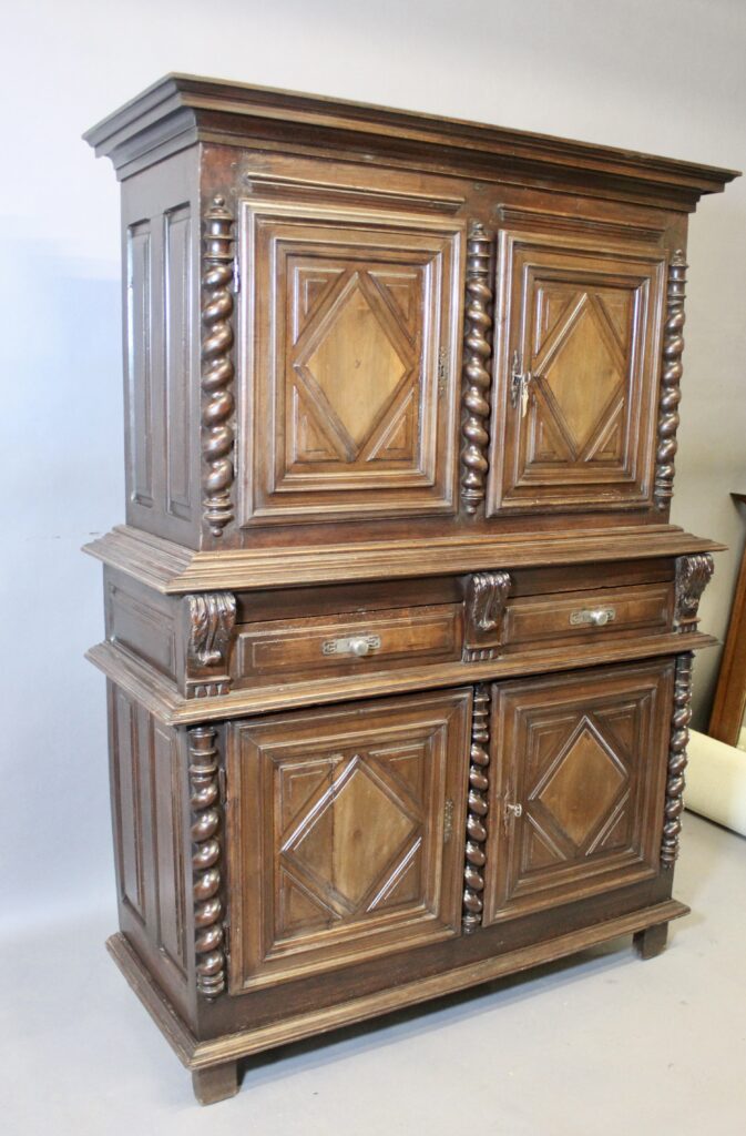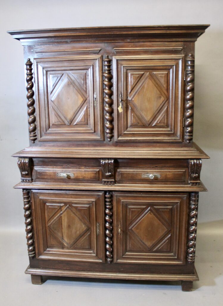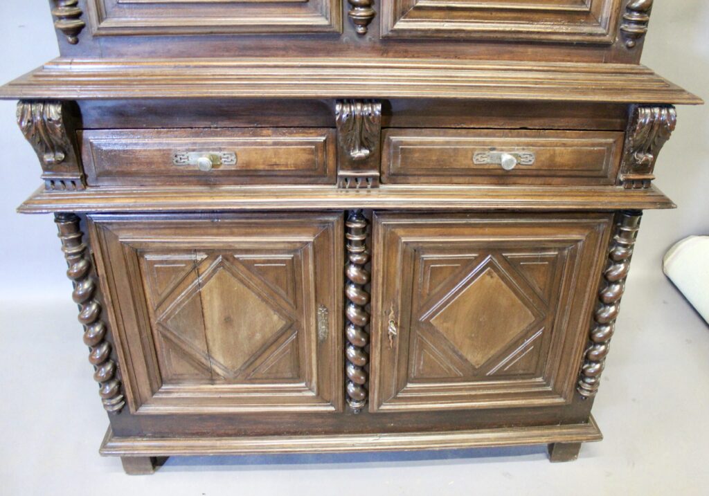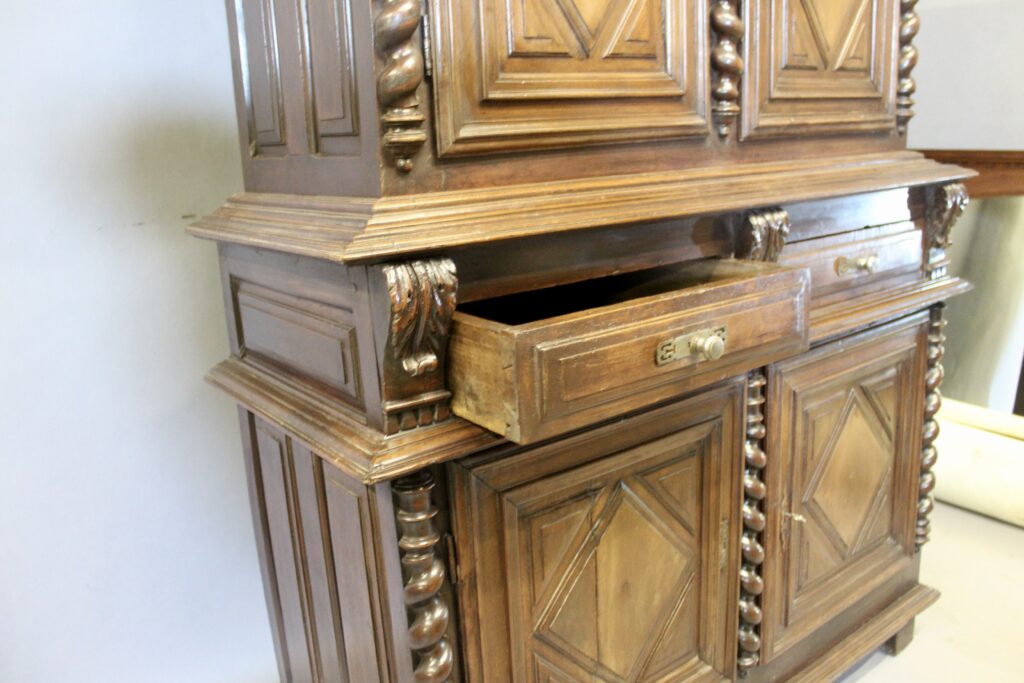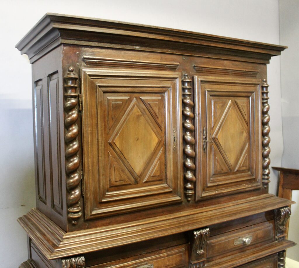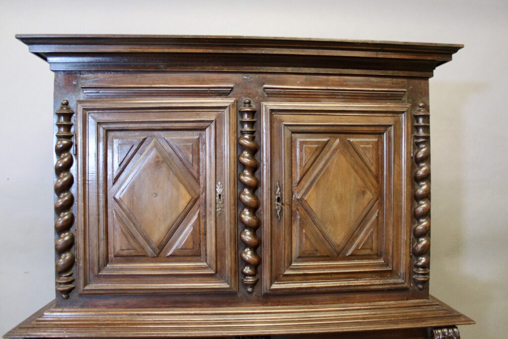 Buffet deux corps à pointe de diamant en noyer LOUIS XIII.