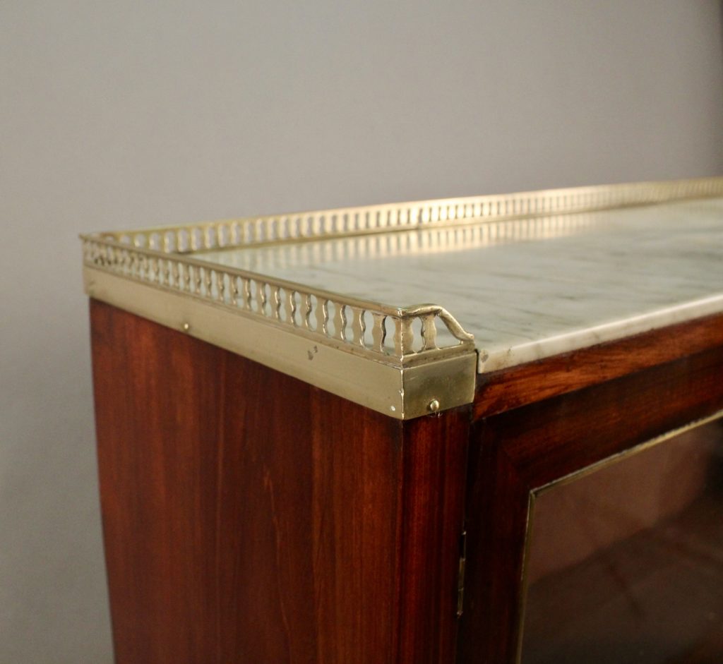 Il est coiffé d'un marbre blanc de Carrare agrémenté d'une galerie en laiton ajouré.
