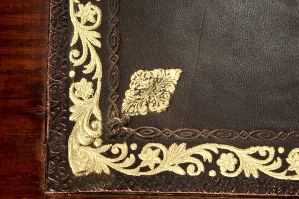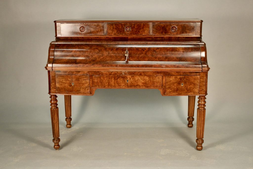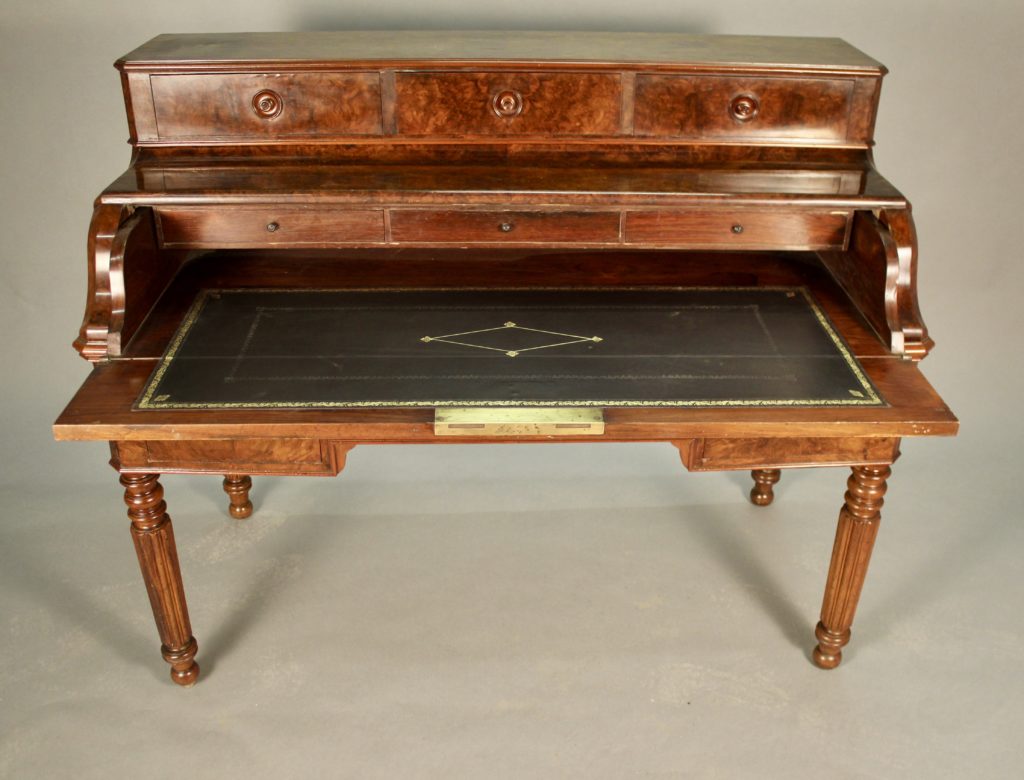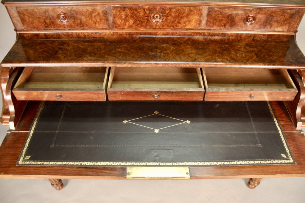 Bureau Louis Philippe en noyer et ronce de noyer, à gradins, surmonté de trois tiroirs.