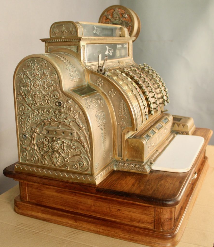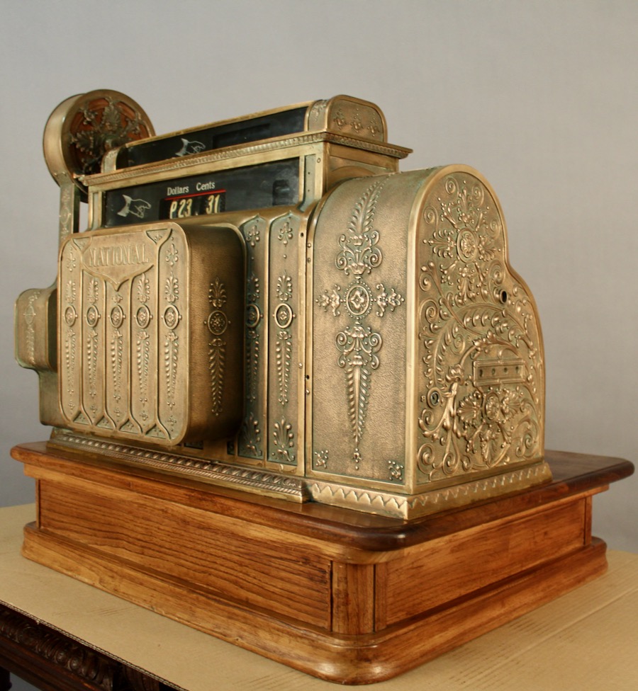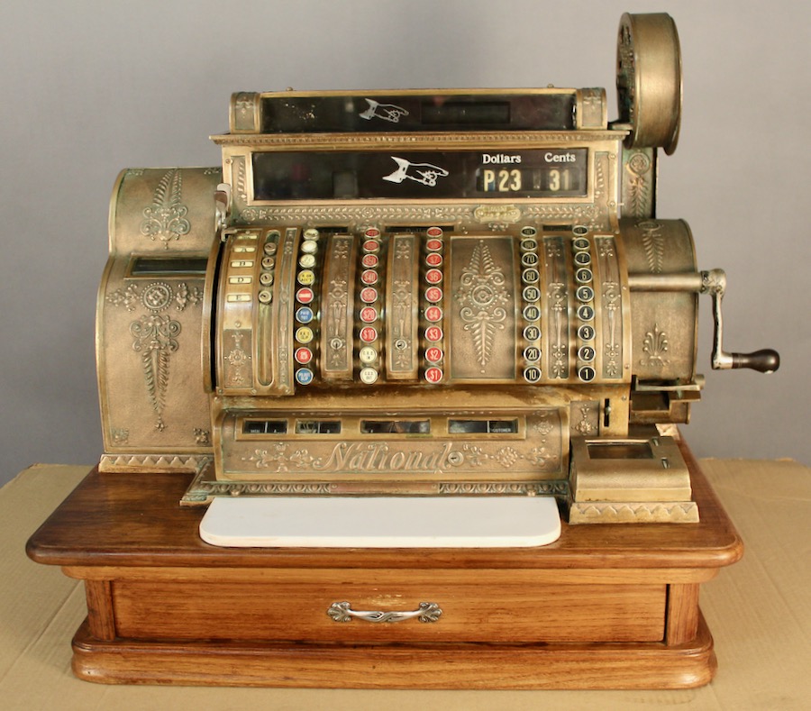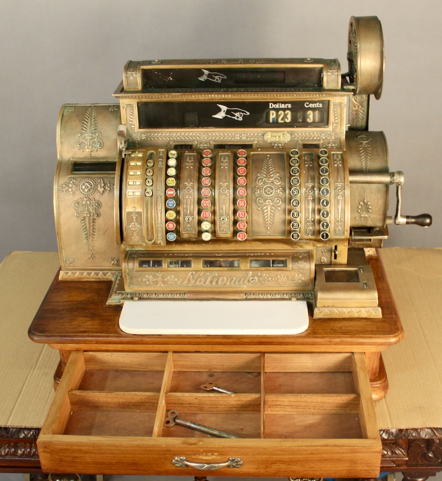 Grand modèle de Caisse enregistreuse de la compagnie américaine National datant du début du XXe siècle.