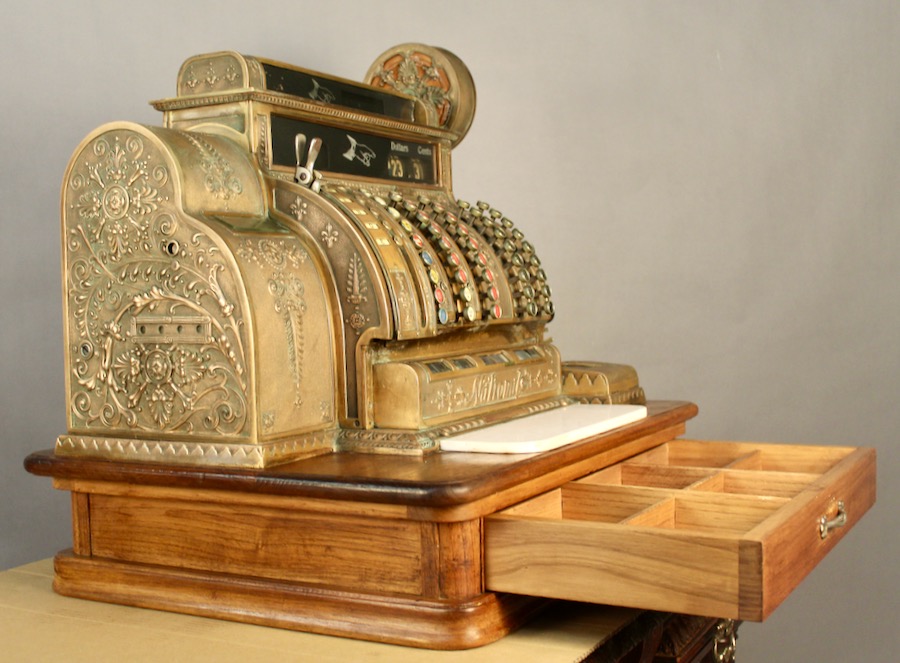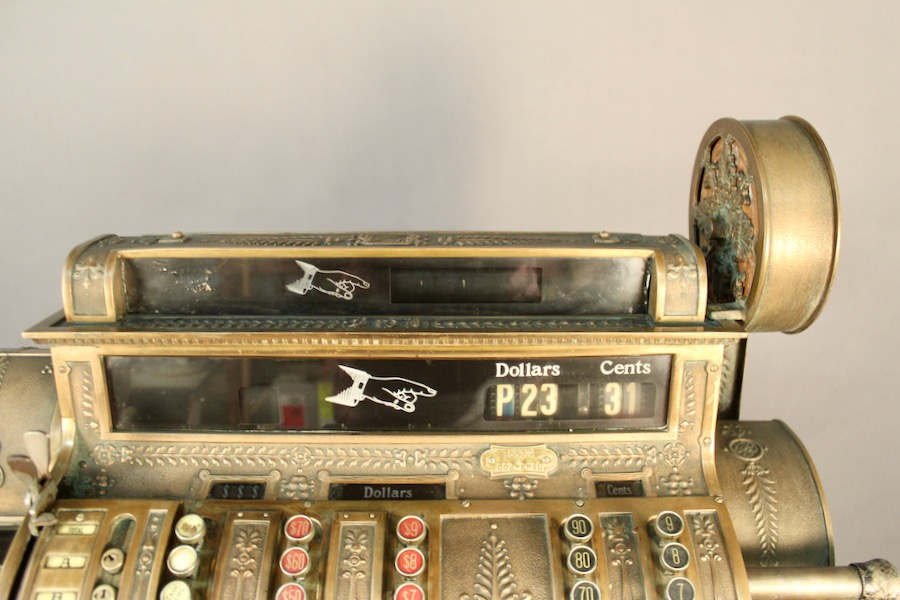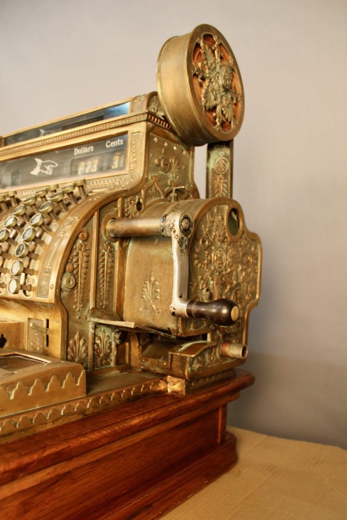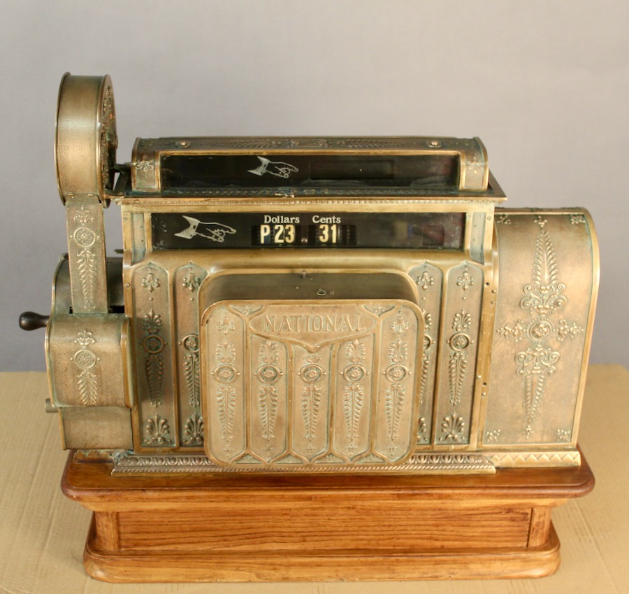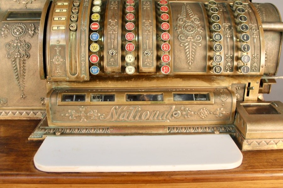 Grand modèle de Caisse enregistreuse de la compagnie américaine National datant du début du XXe siècle.