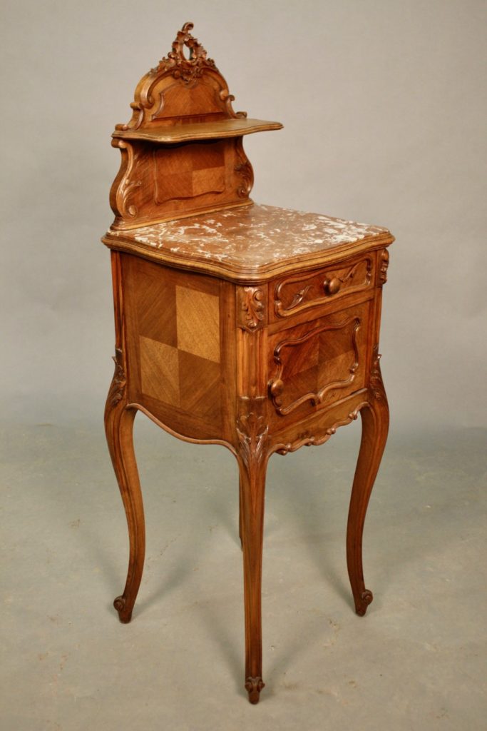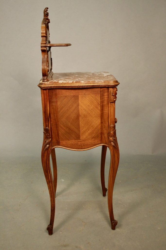 Joli chevet en noyer de style Louis XV, à dessus de marbre.