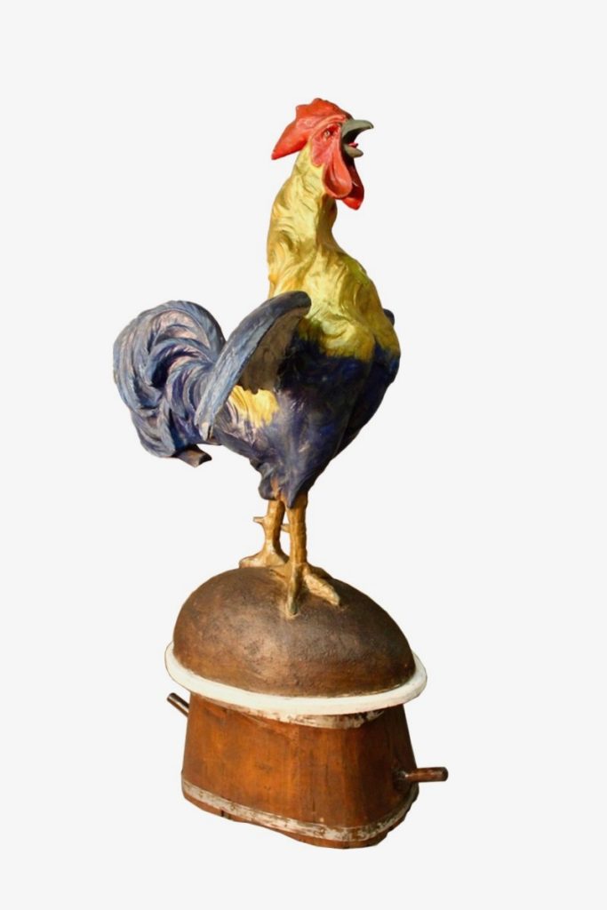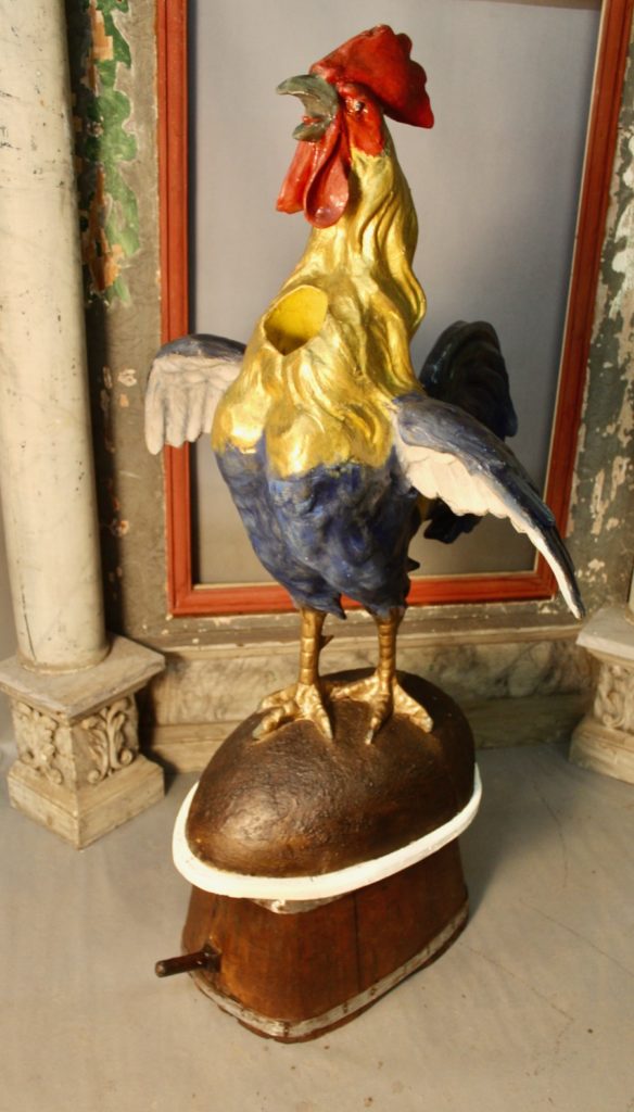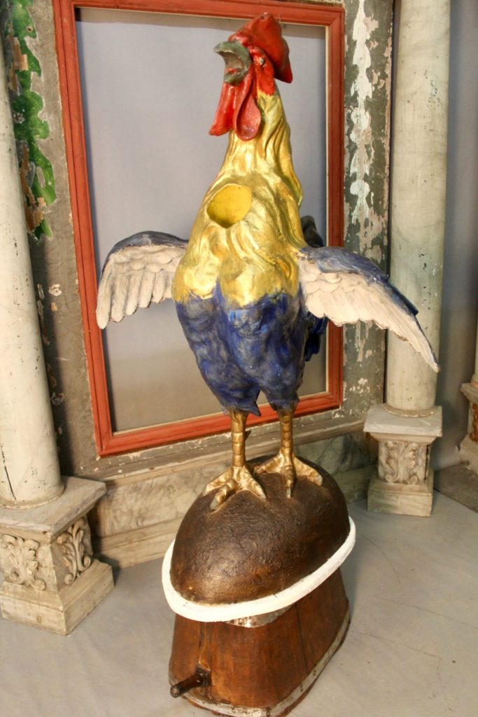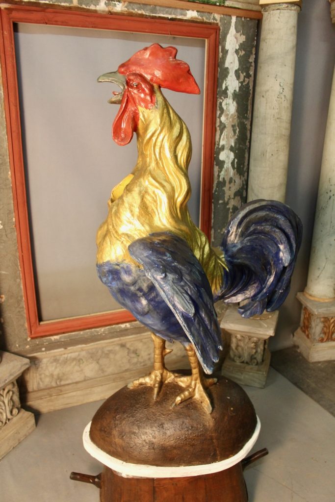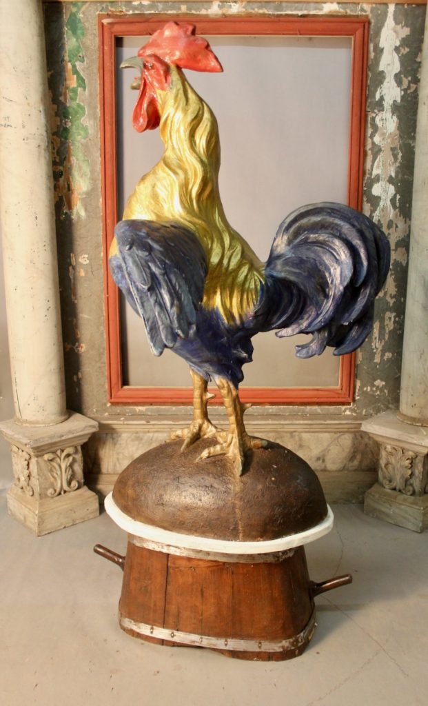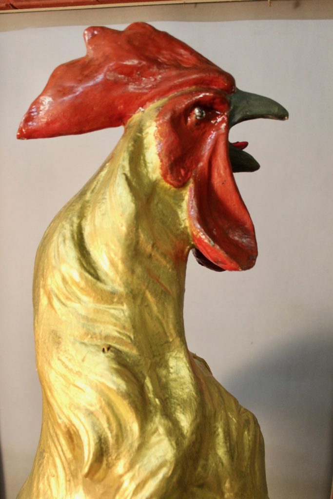 Beau passe boules en carton pressé ou carton bouilli polychrome représentant un Coq aux ailes déployées issu de la célèbre pièce de théâtre d'Edmond Rostand "Chantecler" de 1910.