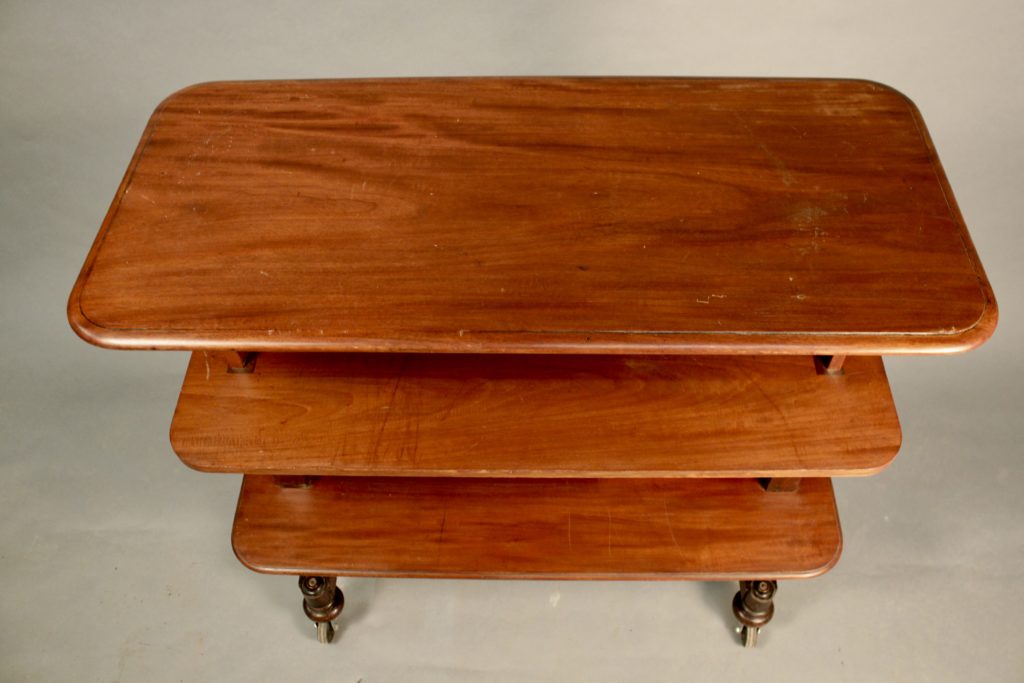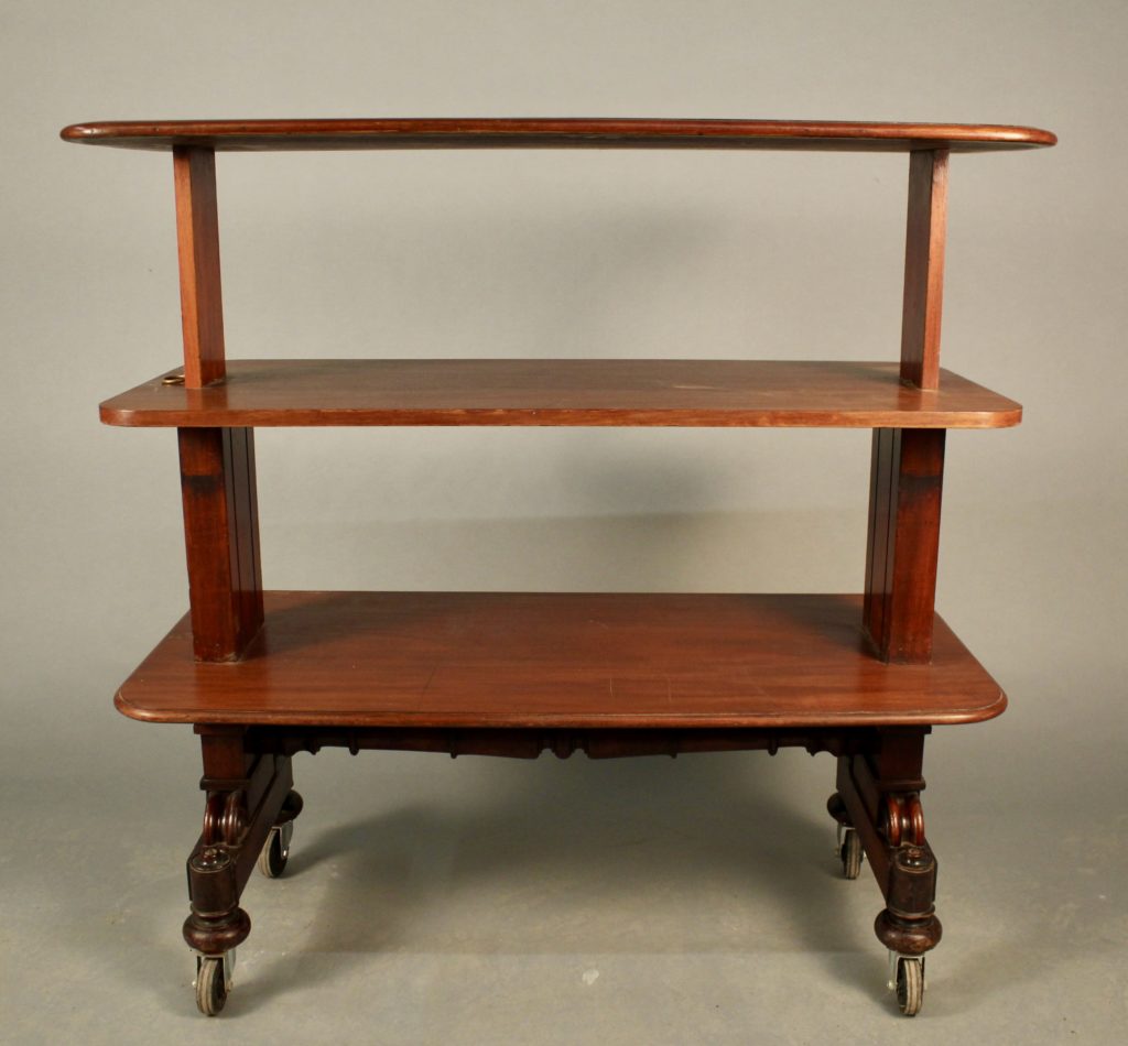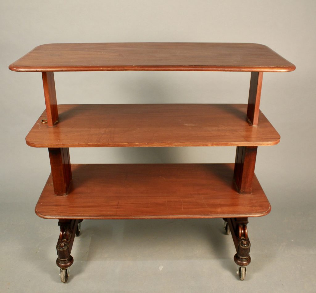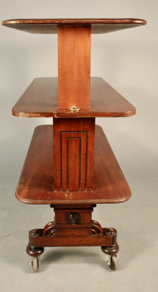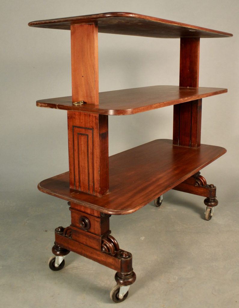 Desserte en acajou d'époque Restauration, première partie du XIXème siècle, à trois plateaux.