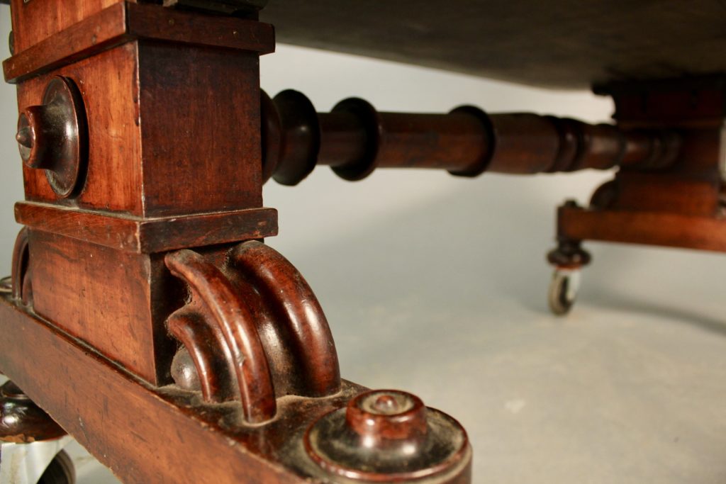 La traverse du bas, rejoignant les deux montants, est très travaillée ,en bois tourné.