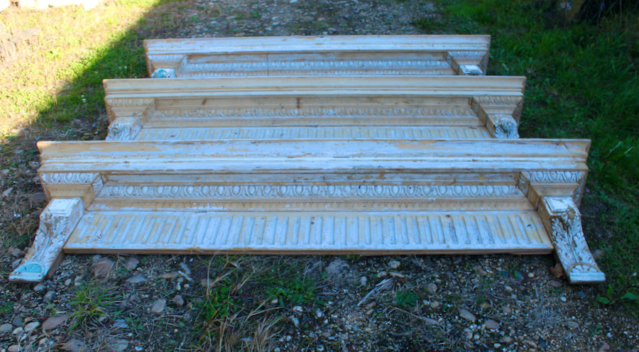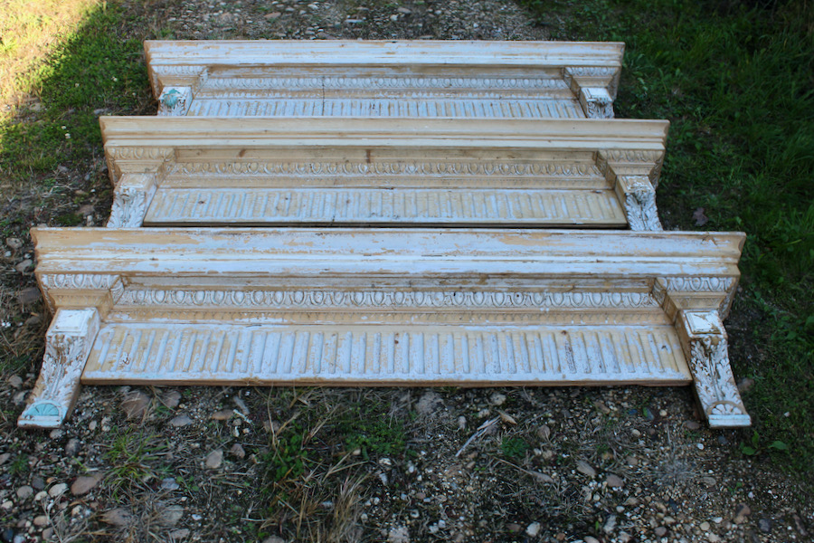 Trois éléments de décoration identiques , en épicéa, patine d'origine.