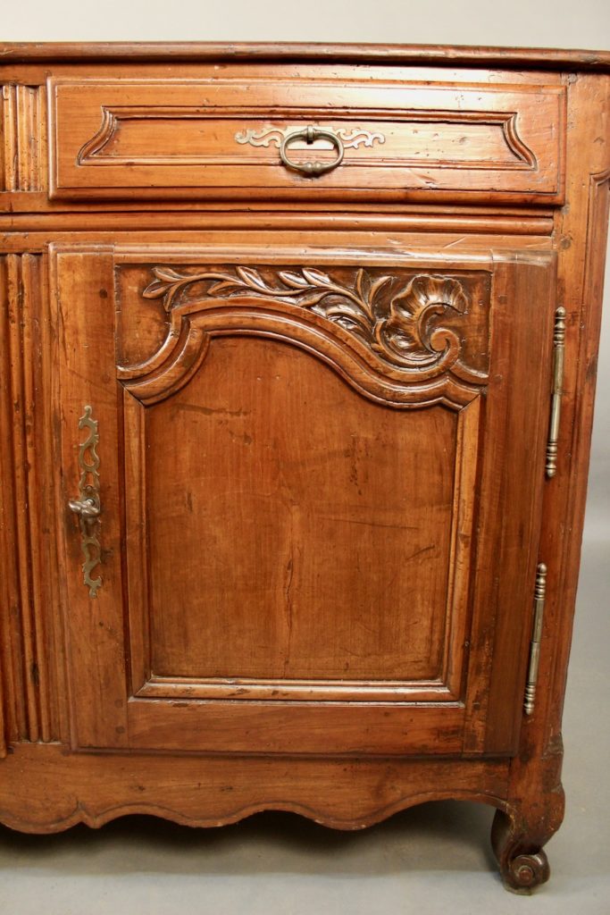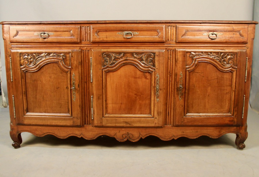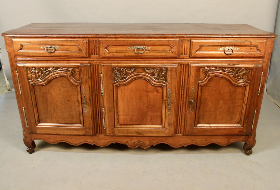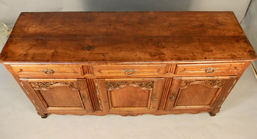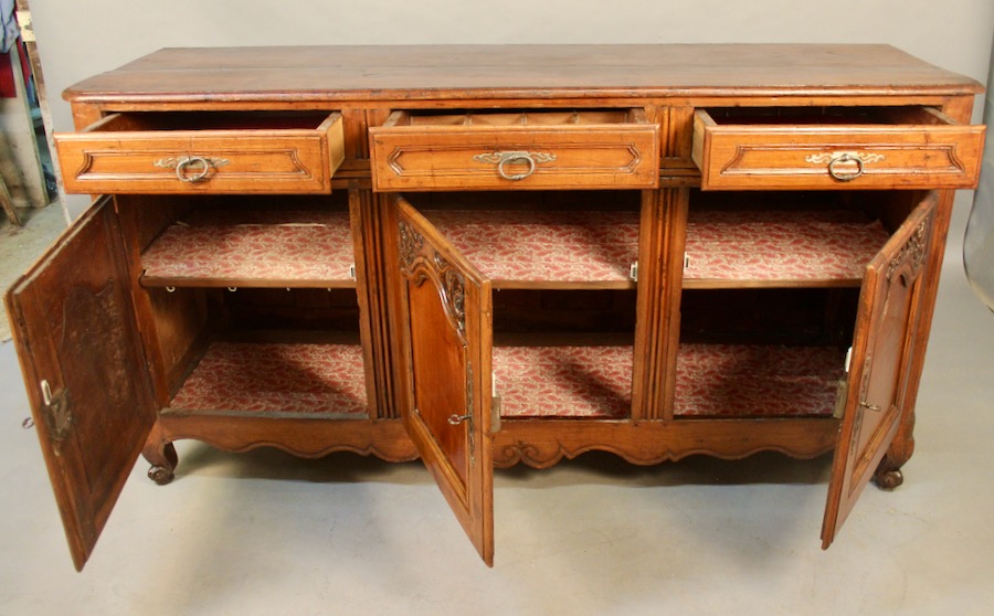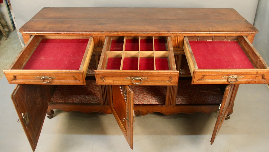 Enfilade Louis XV en noyer ouvrant par trois portes et trois tiroirs, dont un compartimenté.