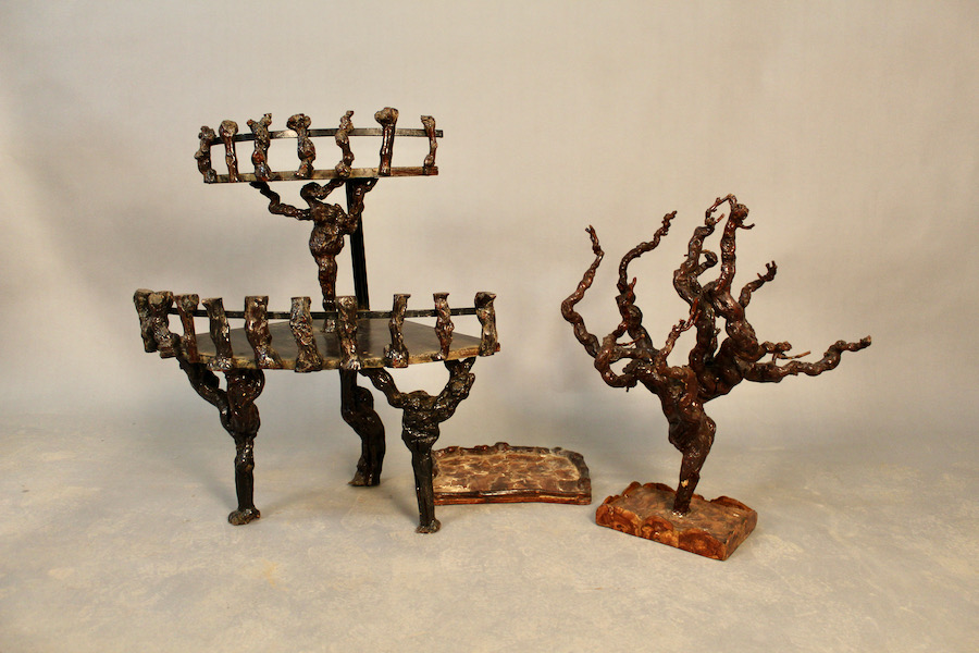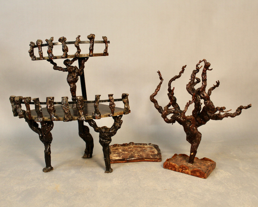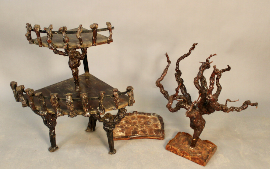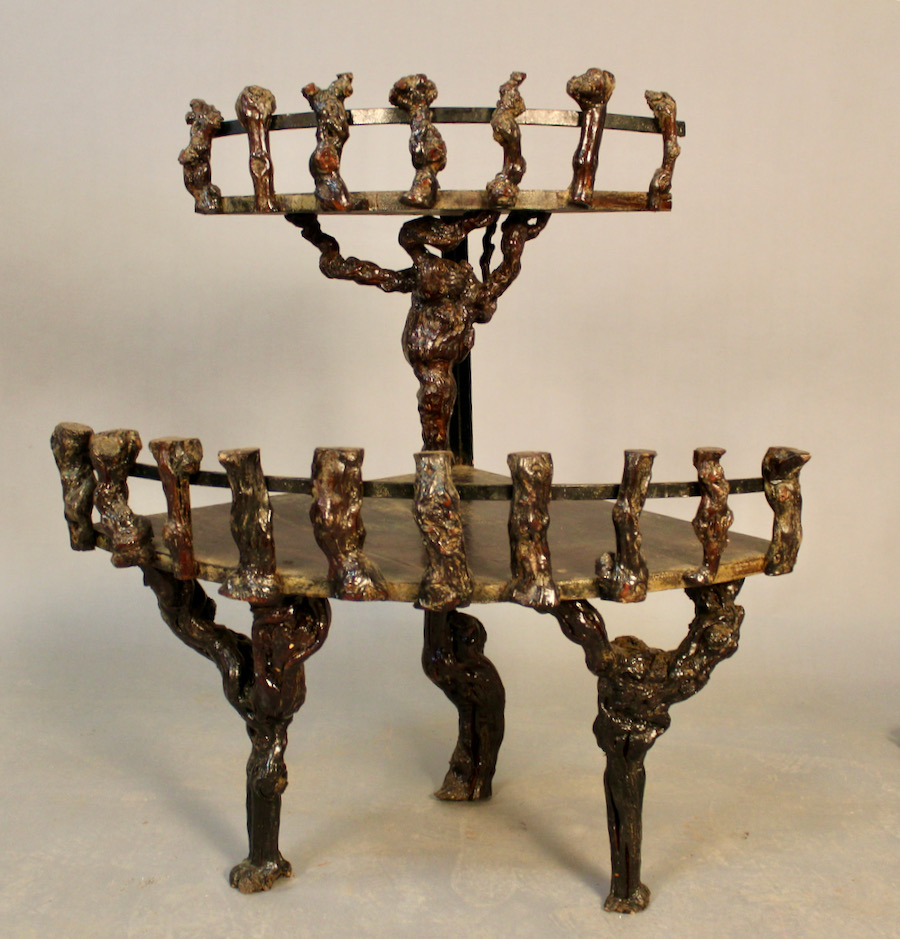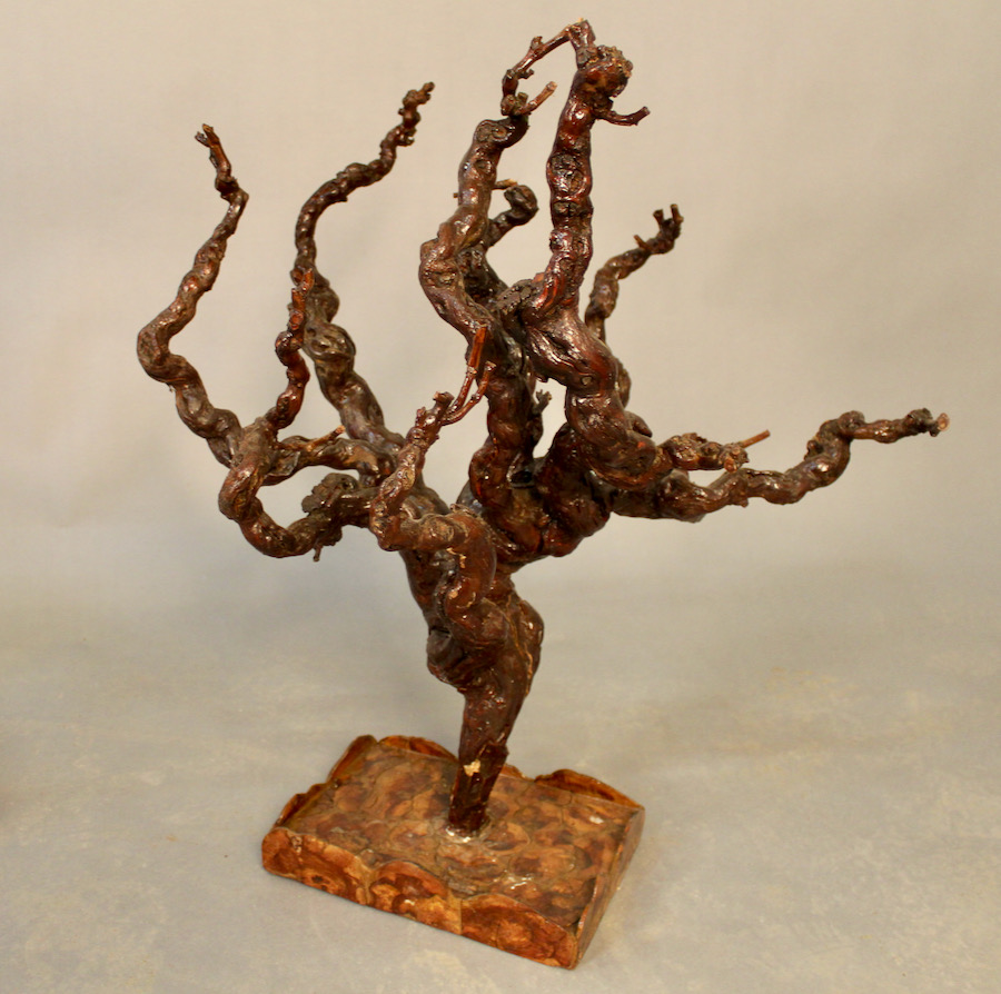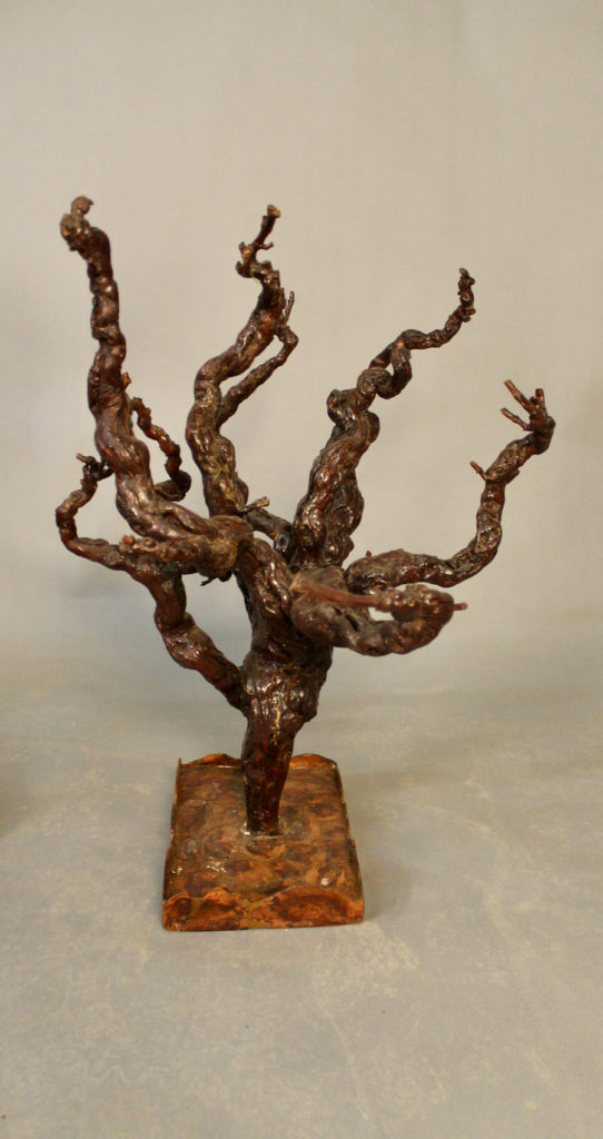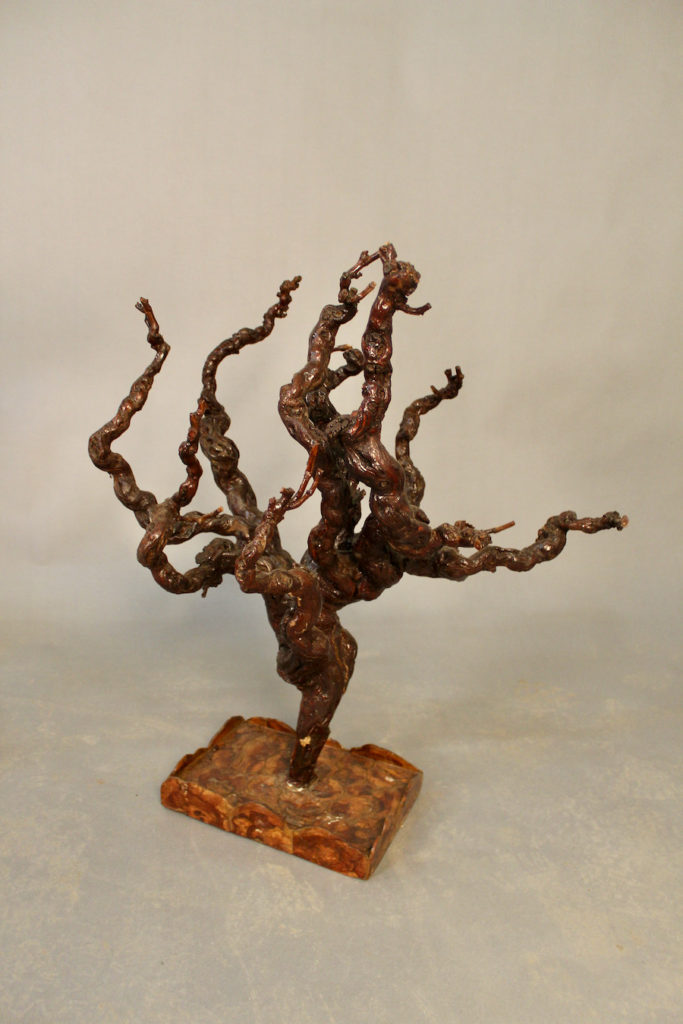Ensemble en ceps de vignes, avec petite desserte à deux plateaux, un cep de vigne sur pied et un petit plateau de service.