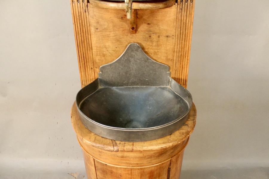 Belle fontaine en étain XVIIIème sur son bâtit Louis XVI.