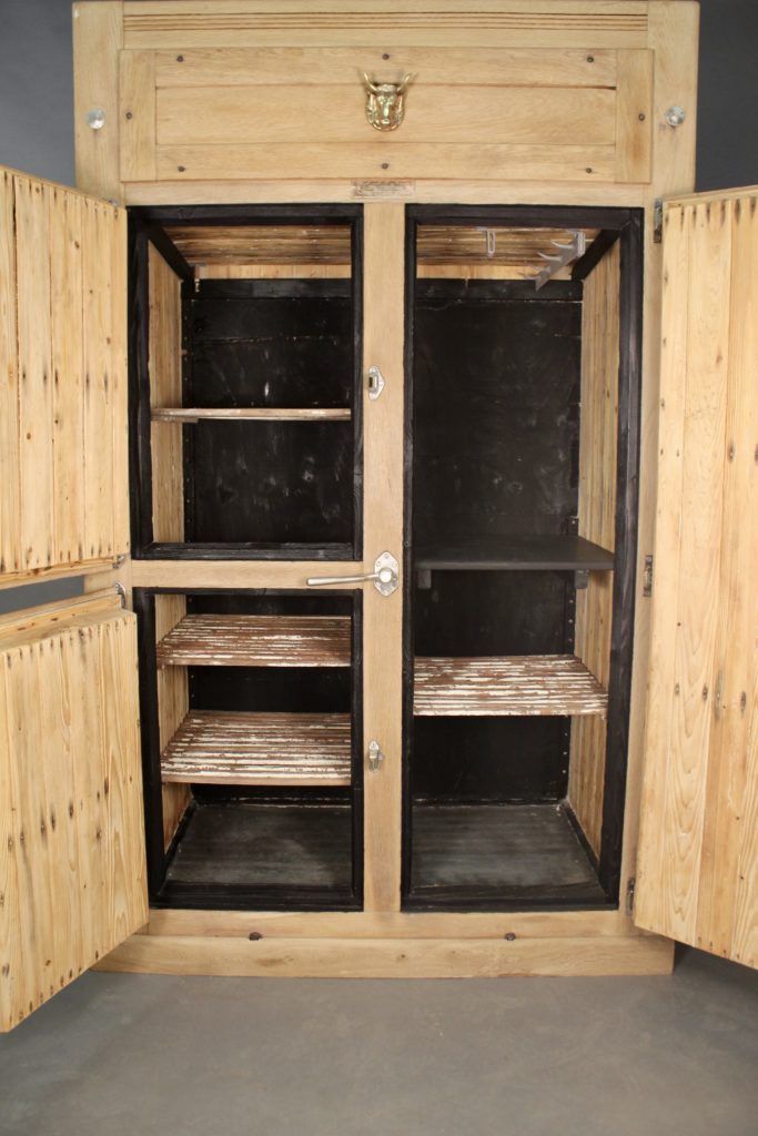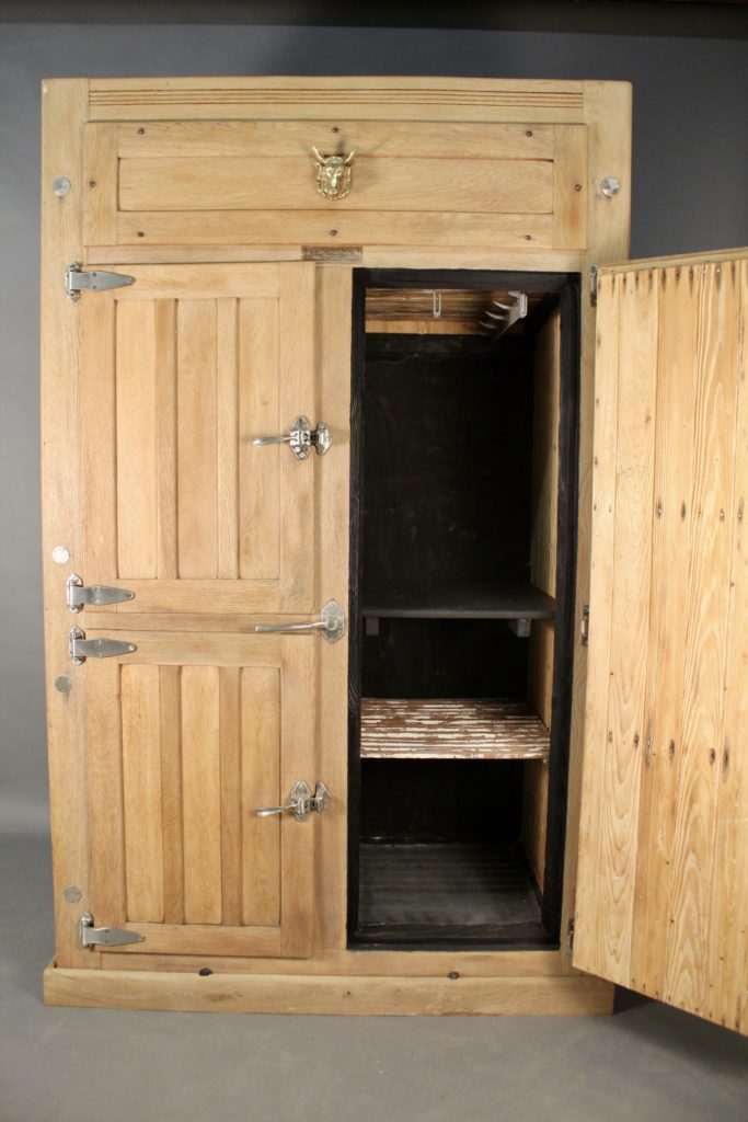 Elle ouvre par trois portes indépendantes, avec poignées et charnières en chrome.