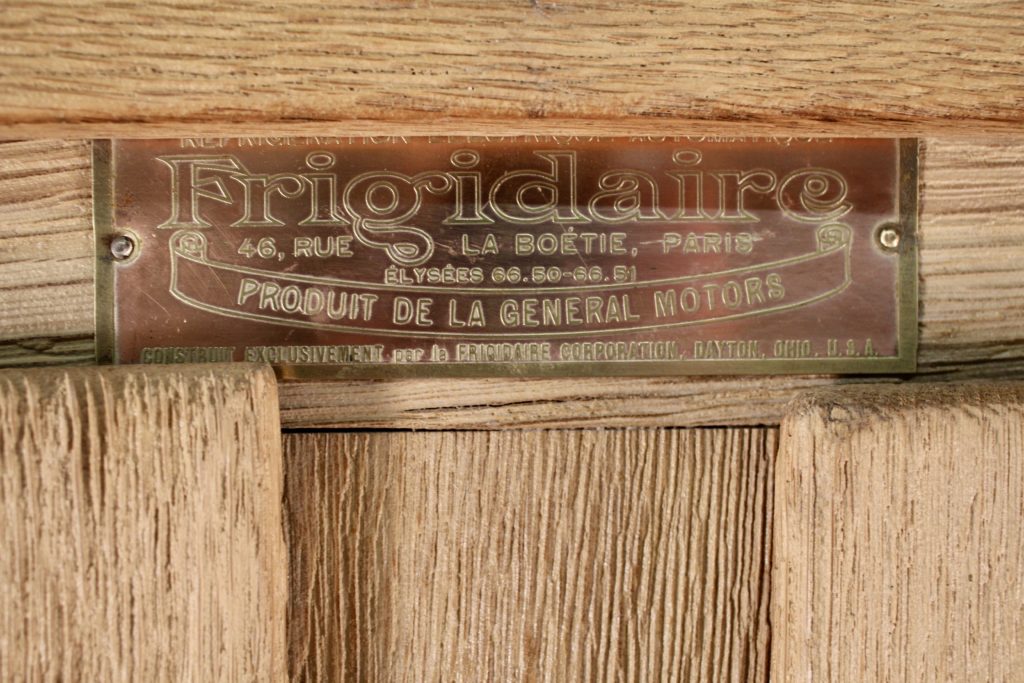 Plaque de cuivre avec la Marque FRIGIDAIRE, la Boetie Paris sur le fronton.