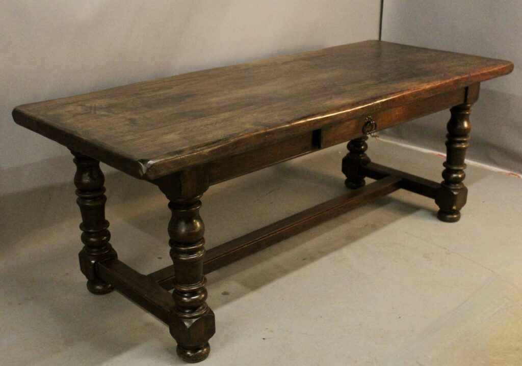 Grande table de ferme ou de salle à manger ouvrant par un tiroir en façade.