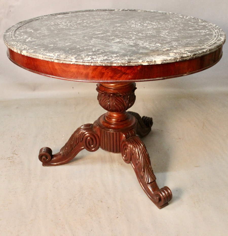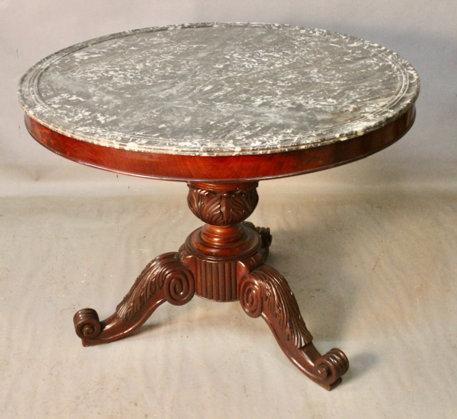 Hauteur 77 cm, diamètre marbre 97 cm.