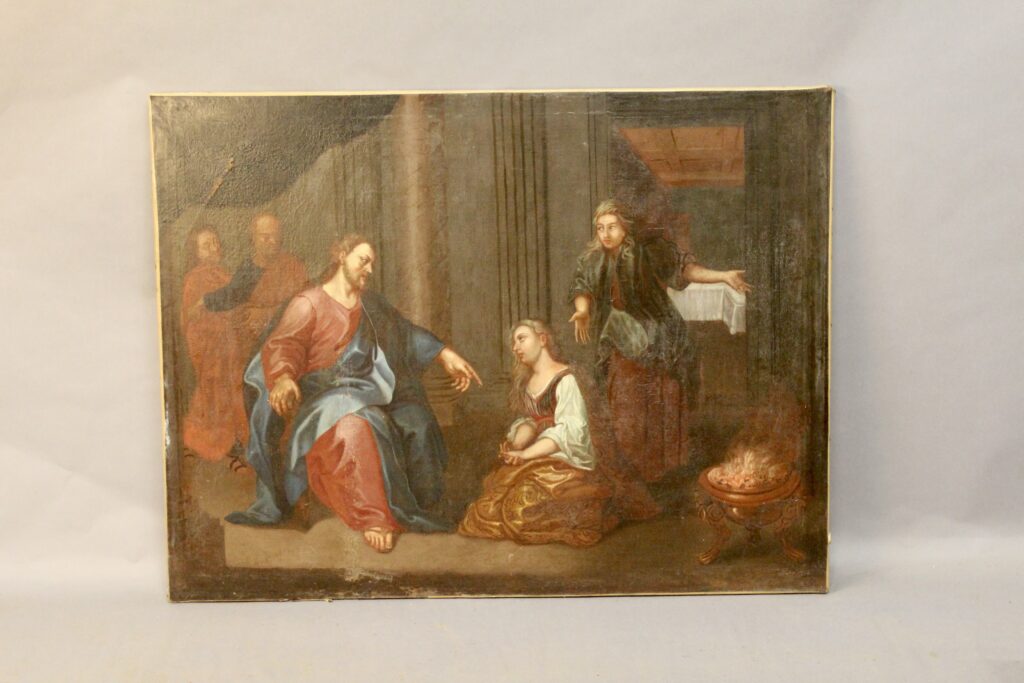 Huile Sur Toile XVIIIème « le Christ Chez Marthe Et Marie »
