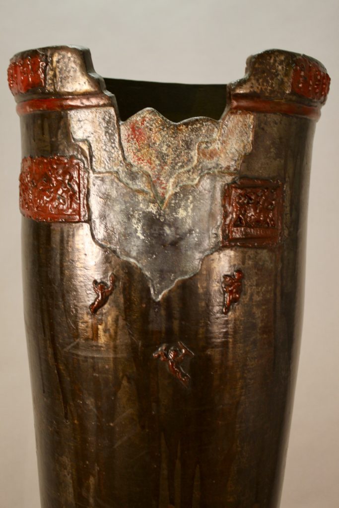 Ses céramiques étaient également commandées par l'Elysée ( sous François Mitterrand puis Jacques Chirac) pour offrir aux chefs d'état étrangers. La jarre repose sur un pied en fonte en forme de cep de vigne.