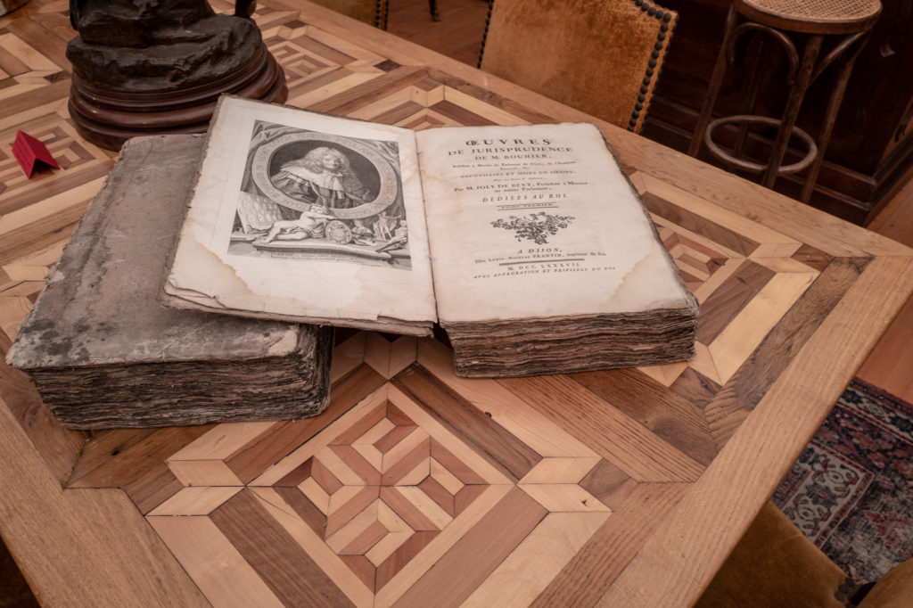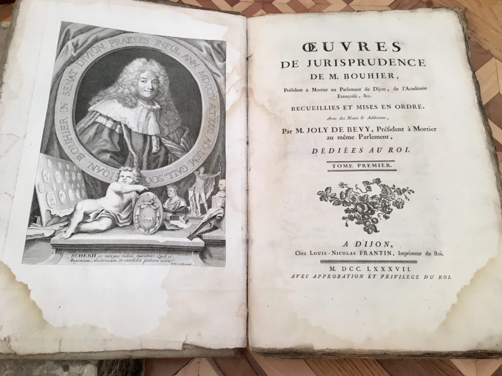 Deux gros volumes des Oeuvres de Jurisprudence datés de 1787 (MDCCLXXXVII), de M.Bouhier.