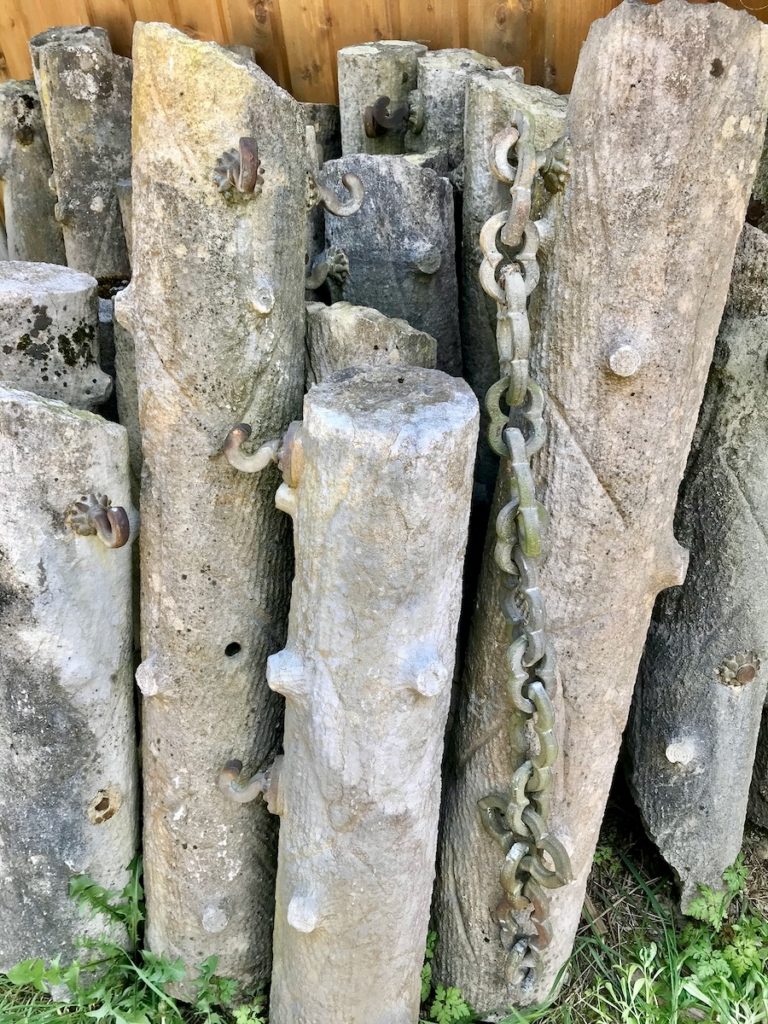 LOT De 32 Poteaux En Pierre d’Hauteville massive, Chaine En Fonte