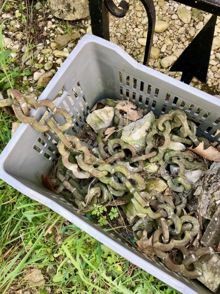 Nous ne disposons pas de toutes les chaines, mais tous les poteaux sont pourvus de crochets en fonte également.