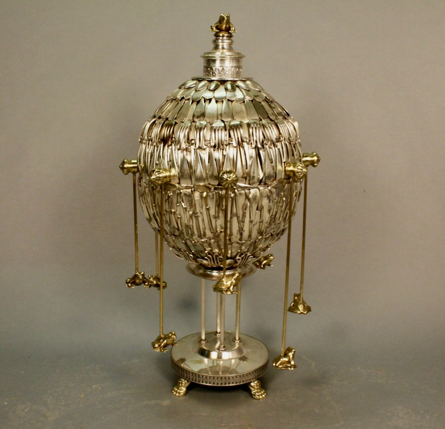 "Manège à grenouilles" réalisé par Patrick Doutres en 2010, le sculpteur aux couverts d'argent.