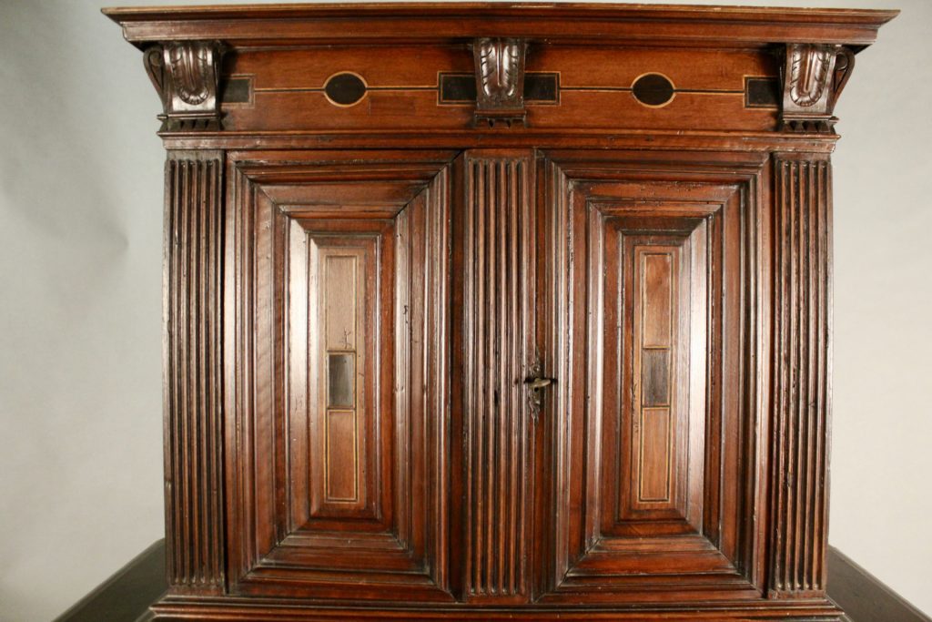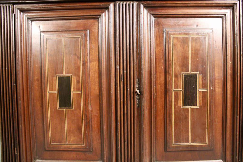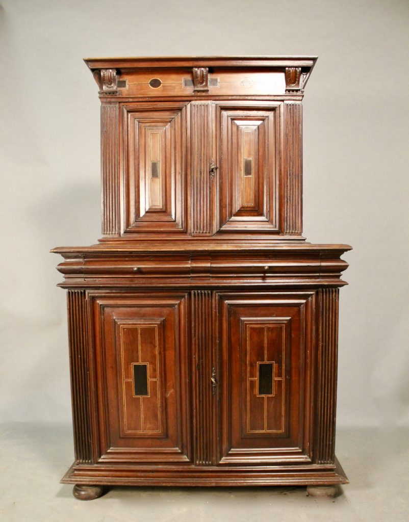 Meuble deux corps Louis XIII, en noyer et filets de marqueterie de citronnier et bois noirci.