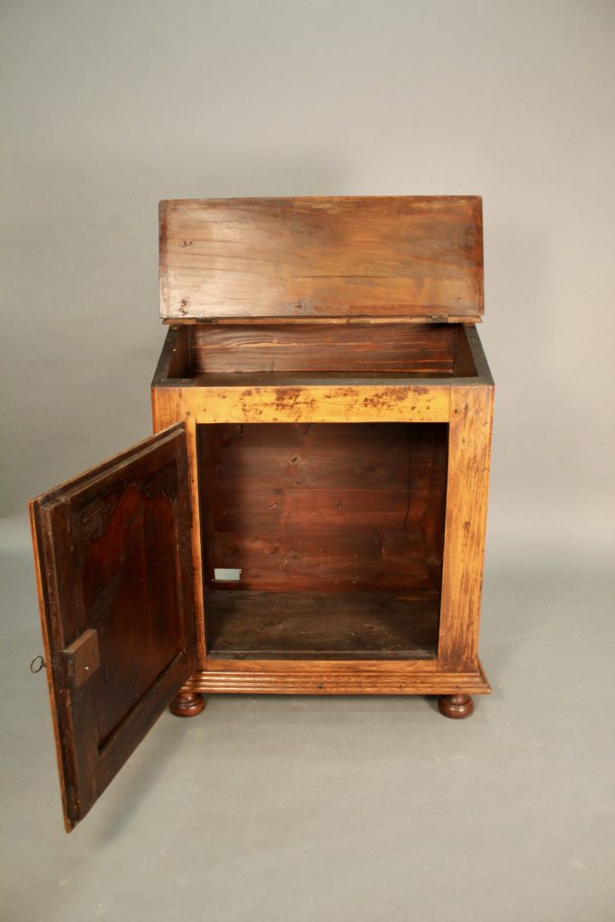 Il ouvre par une porte à cadre, moulurée et par un abatant.