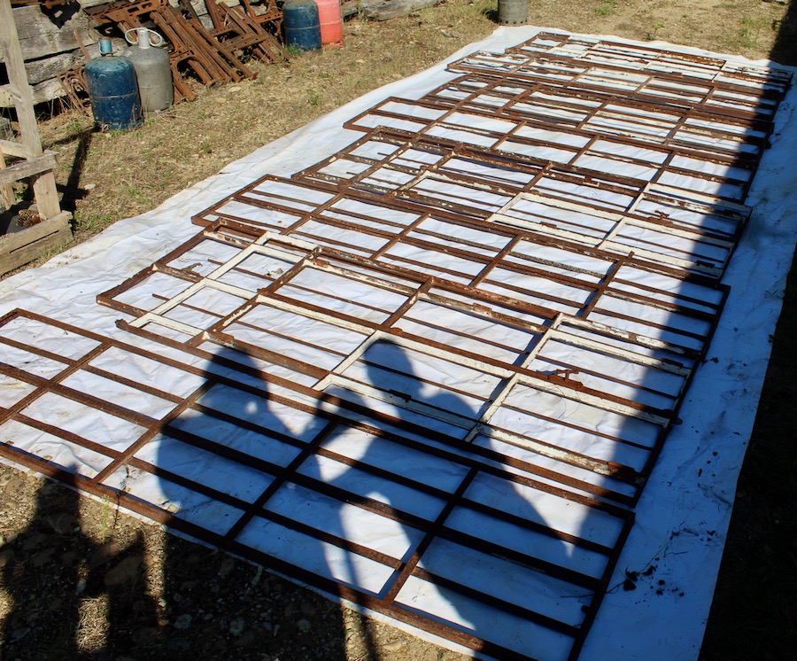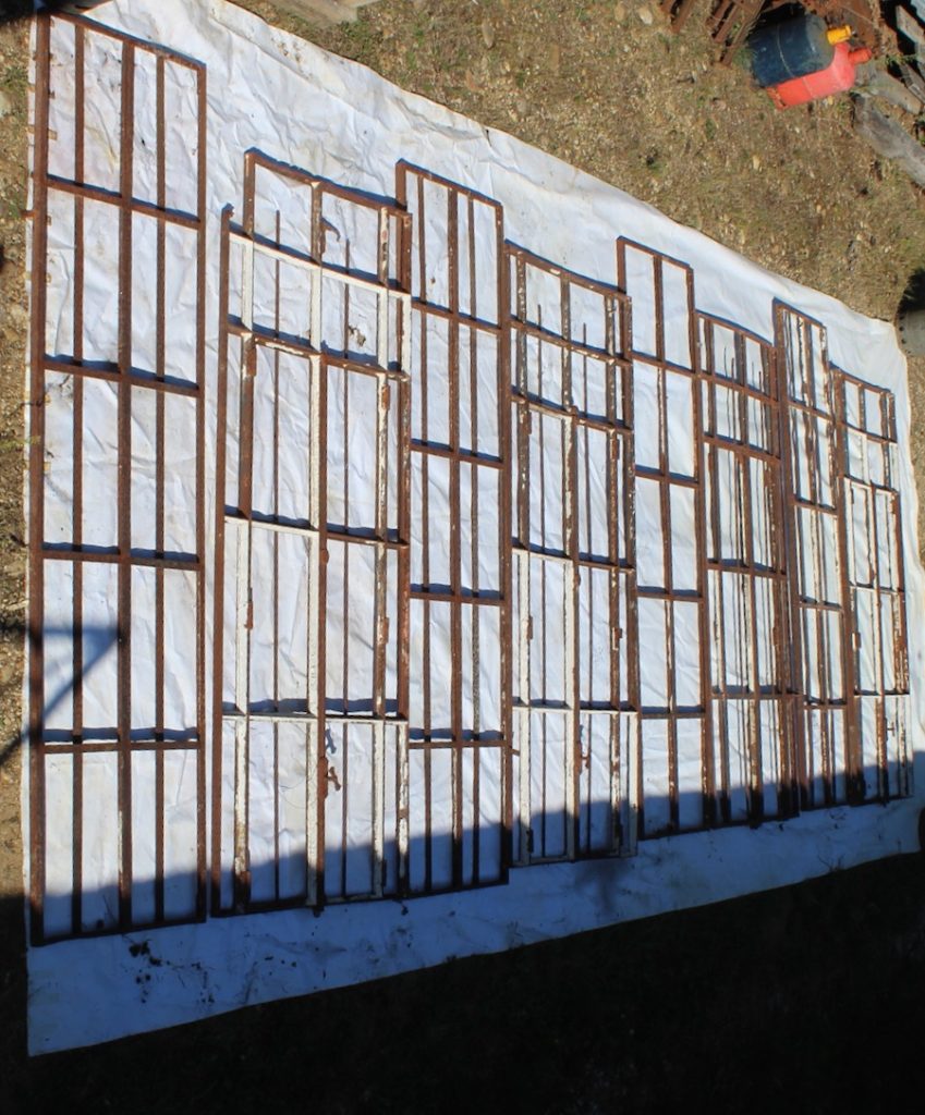 4 chassis ouvrants en façade avec poignées d'origine (il manque une poignée) et 6 éléments fixes.