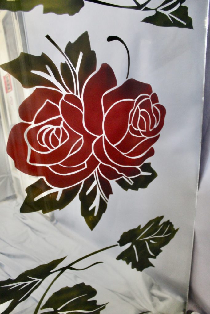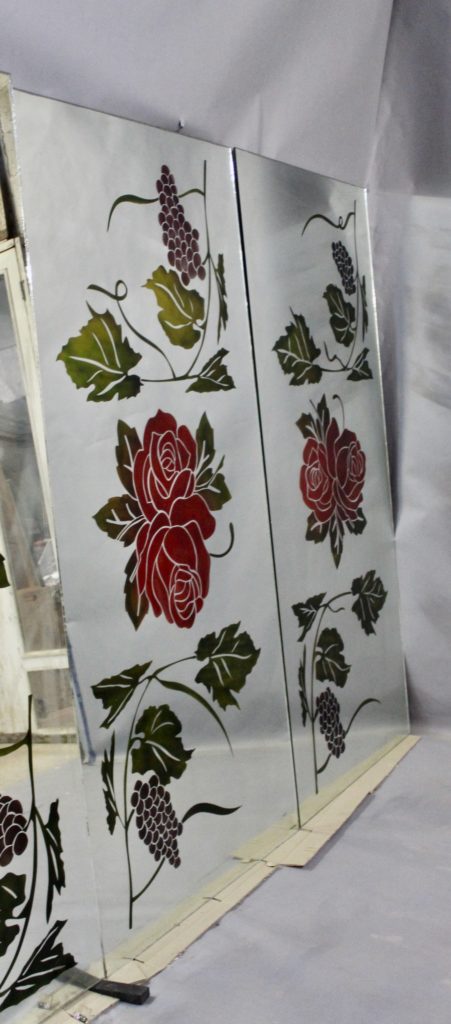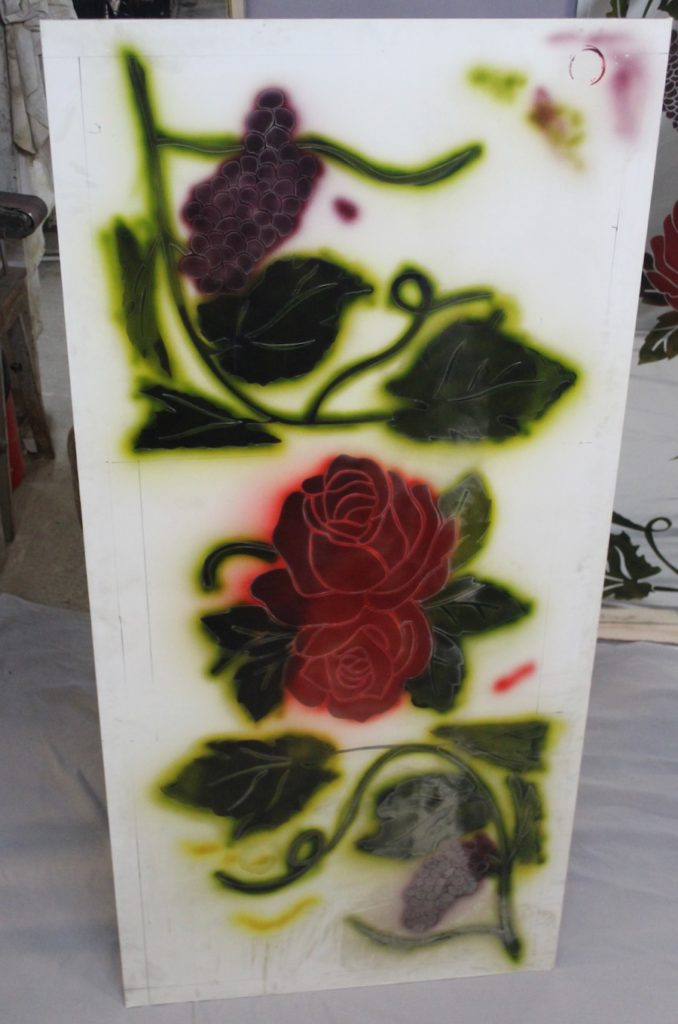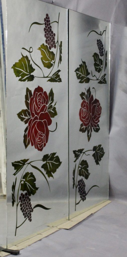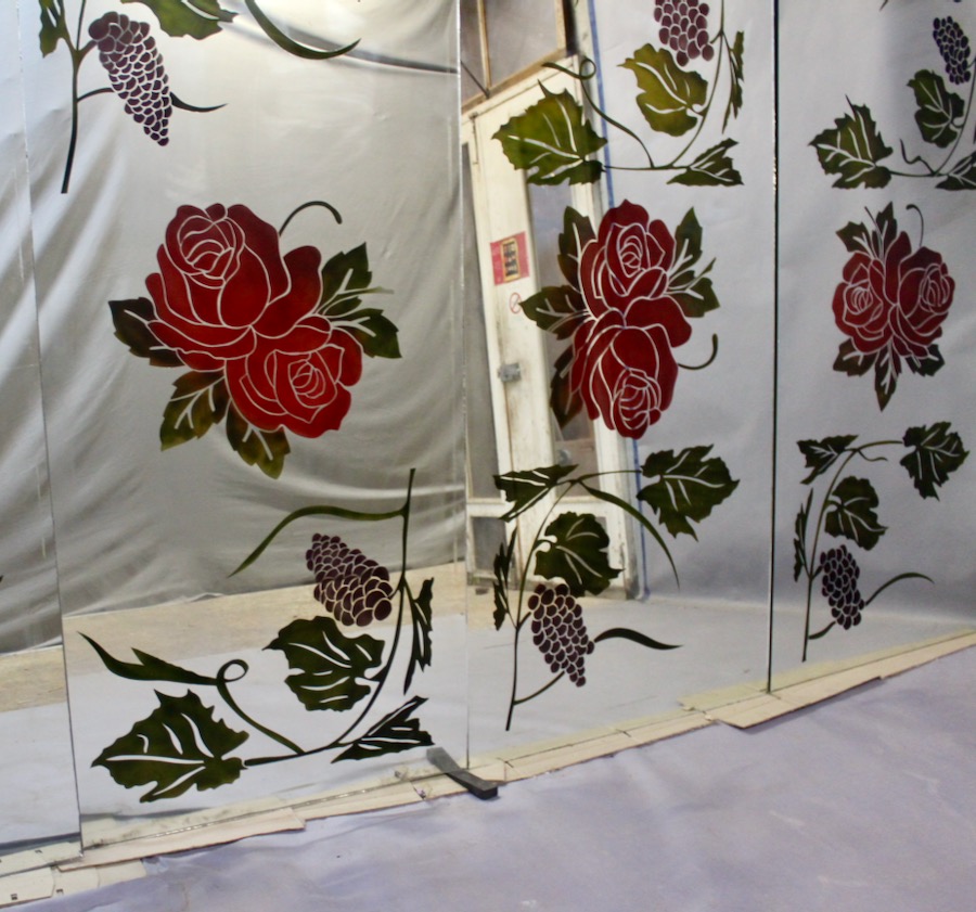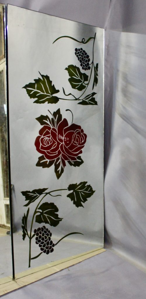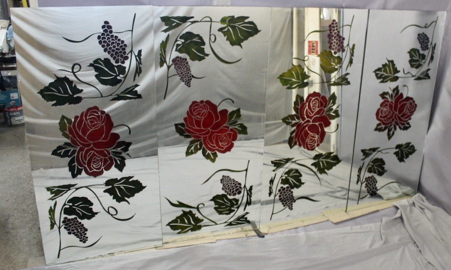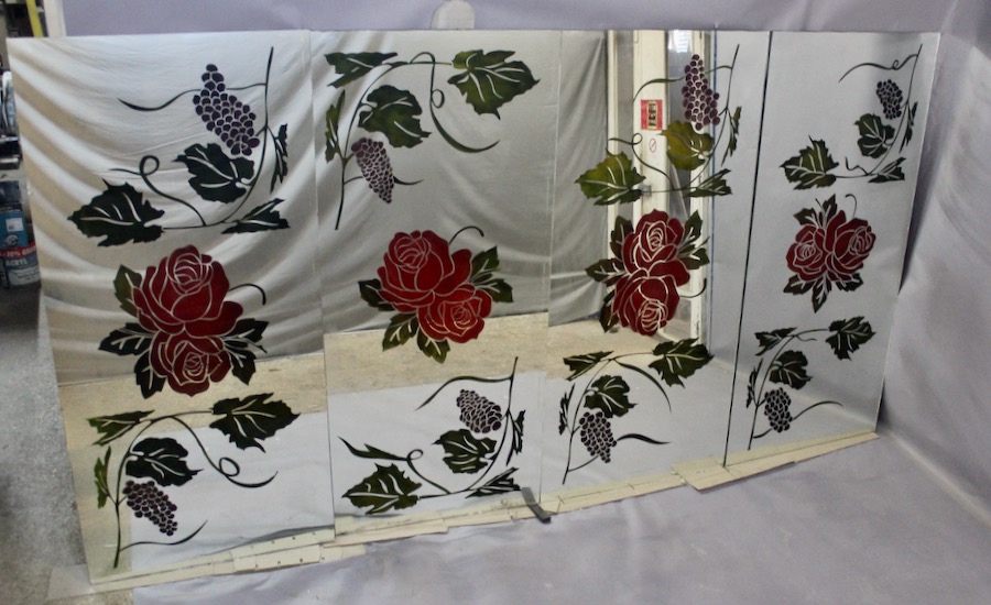 Suite de 4 grands miroirs décorés de roses et raisins.