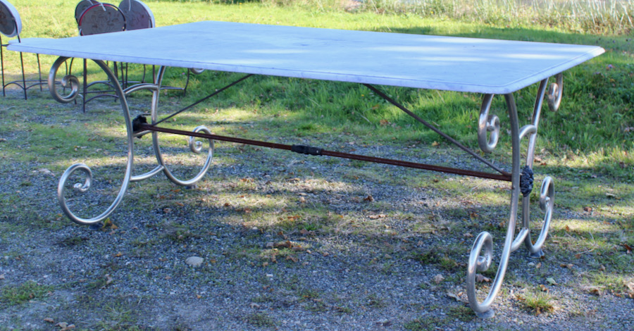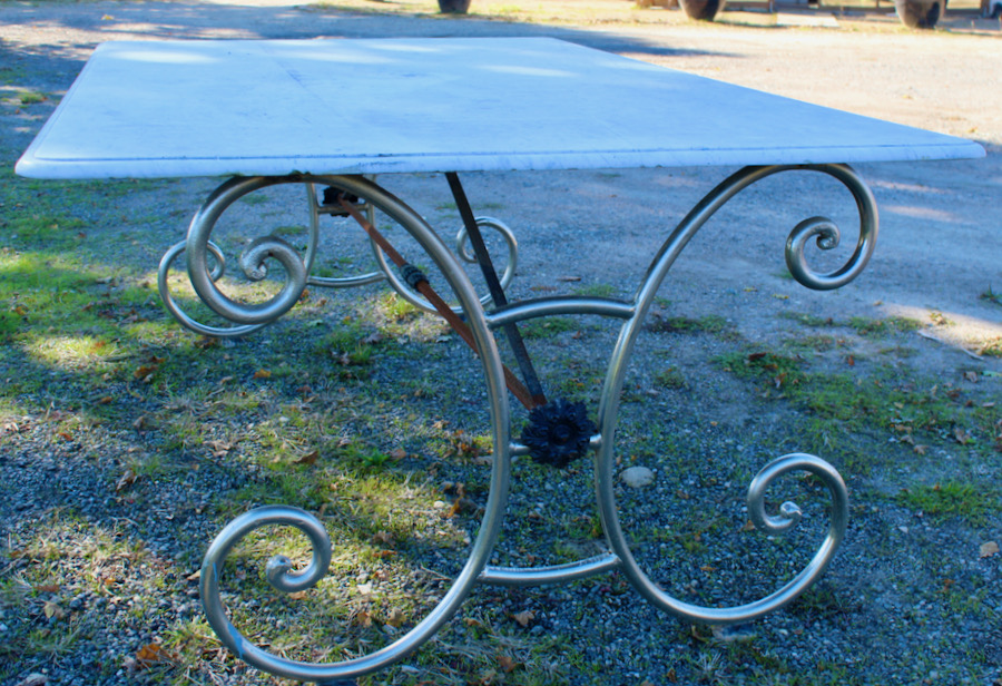 Table Dessus Marbre De Carrare Piètement Fer Forgé