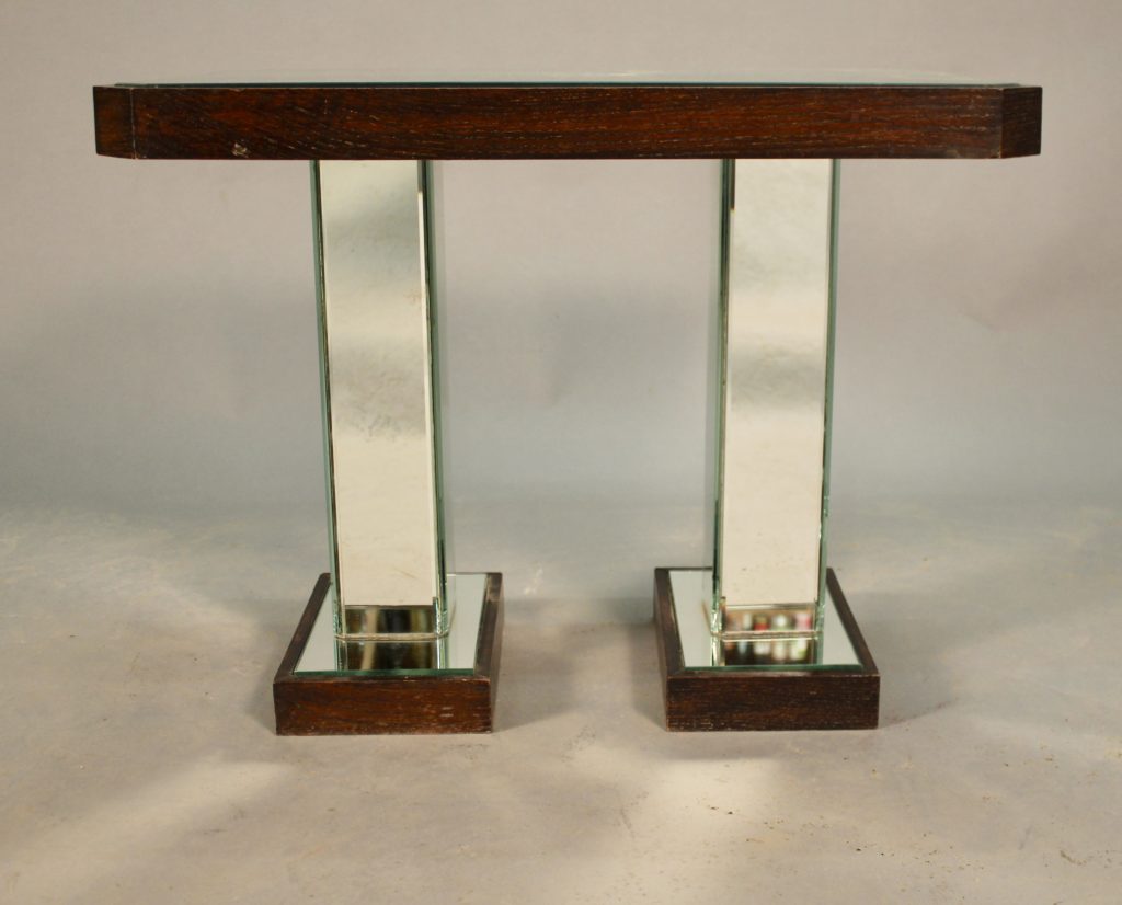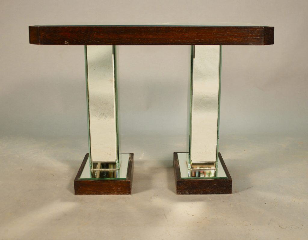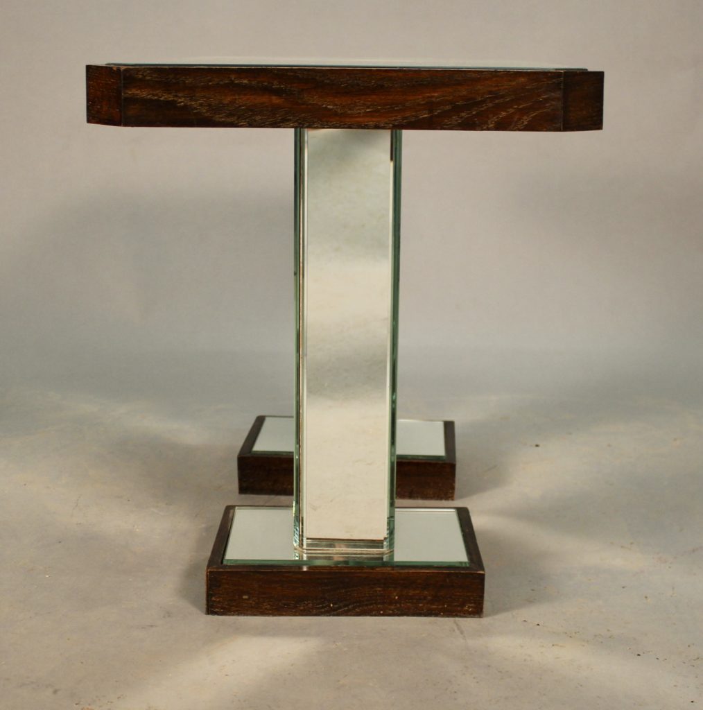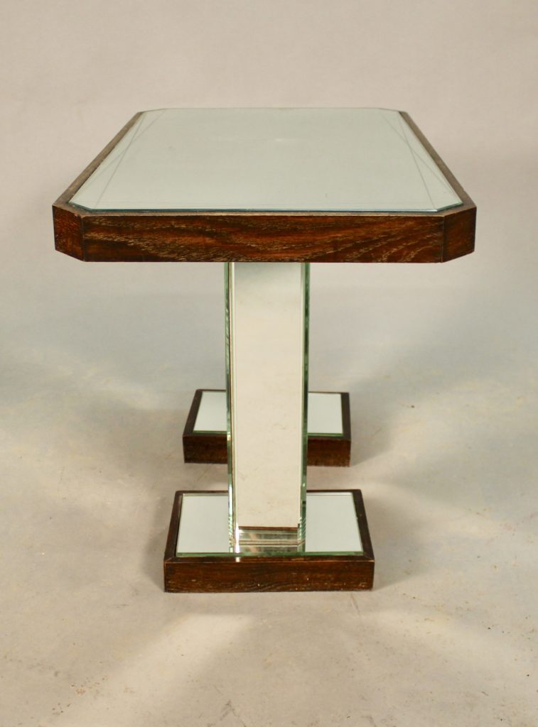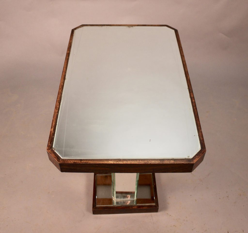 Table basse à dessus miroir. Glace d'origine sur le dessus, verre gravé.