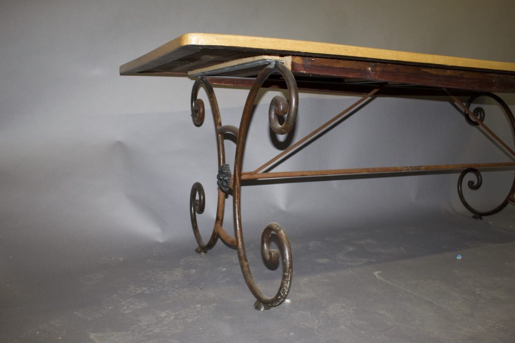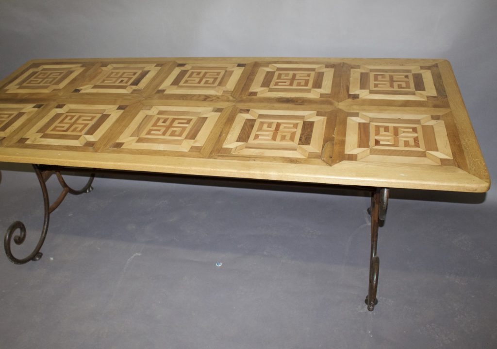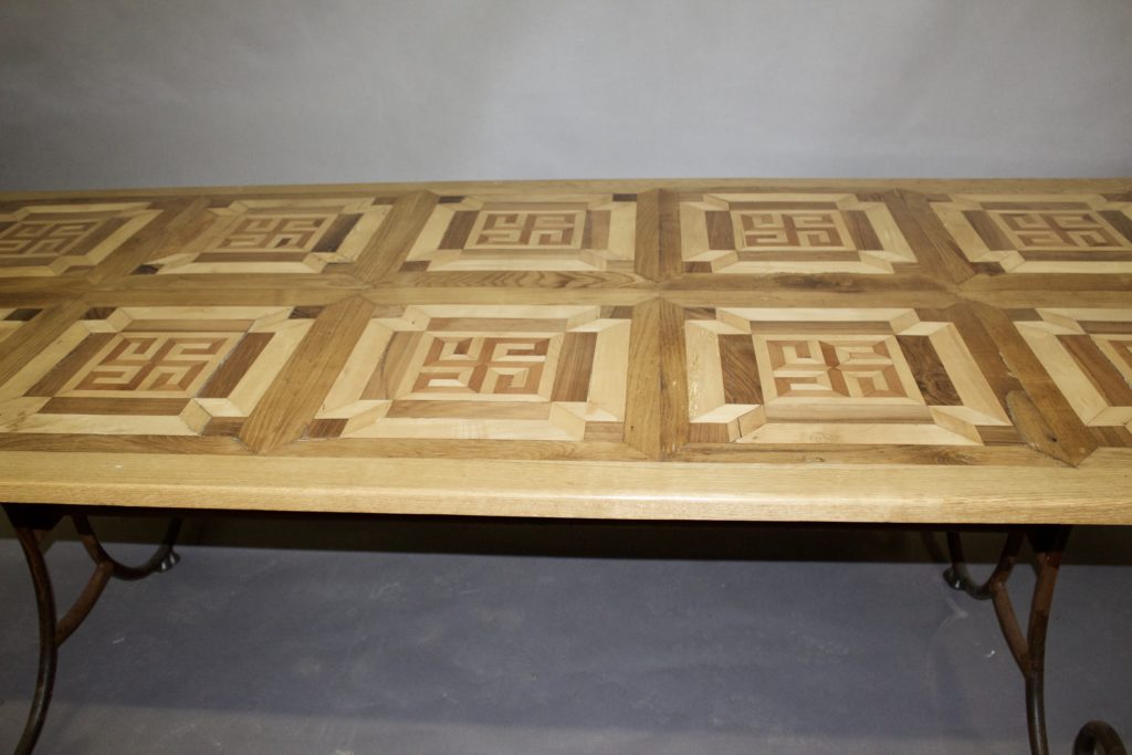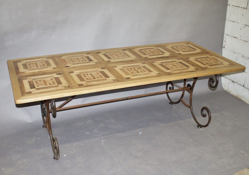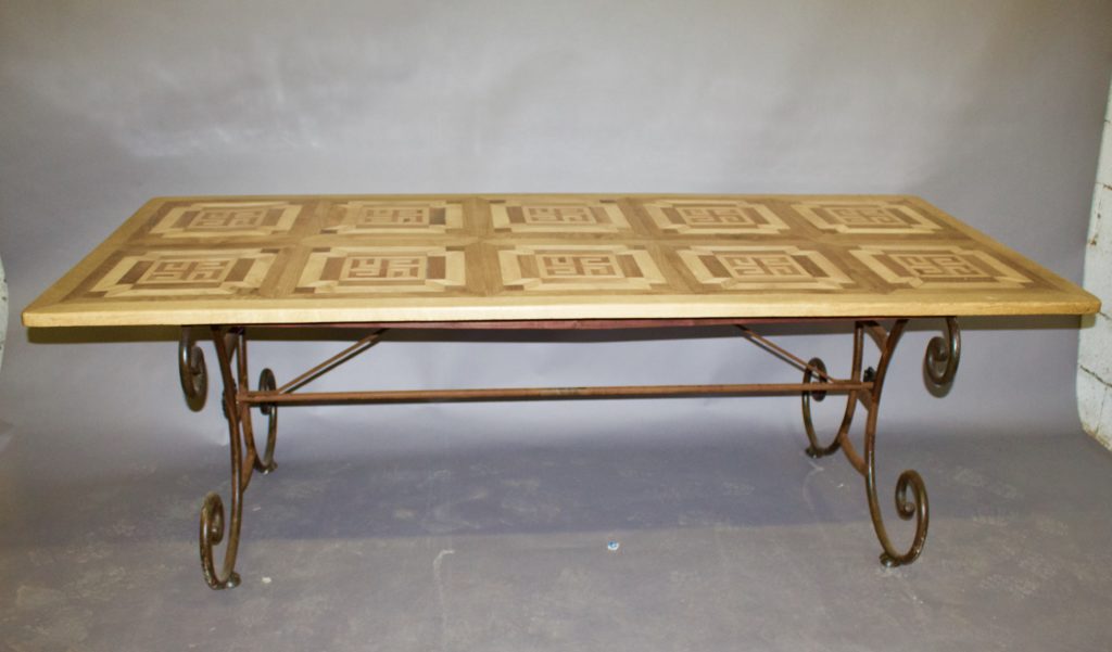 Table Dessus Parquet Ancien, Piètement Fer Forgé
