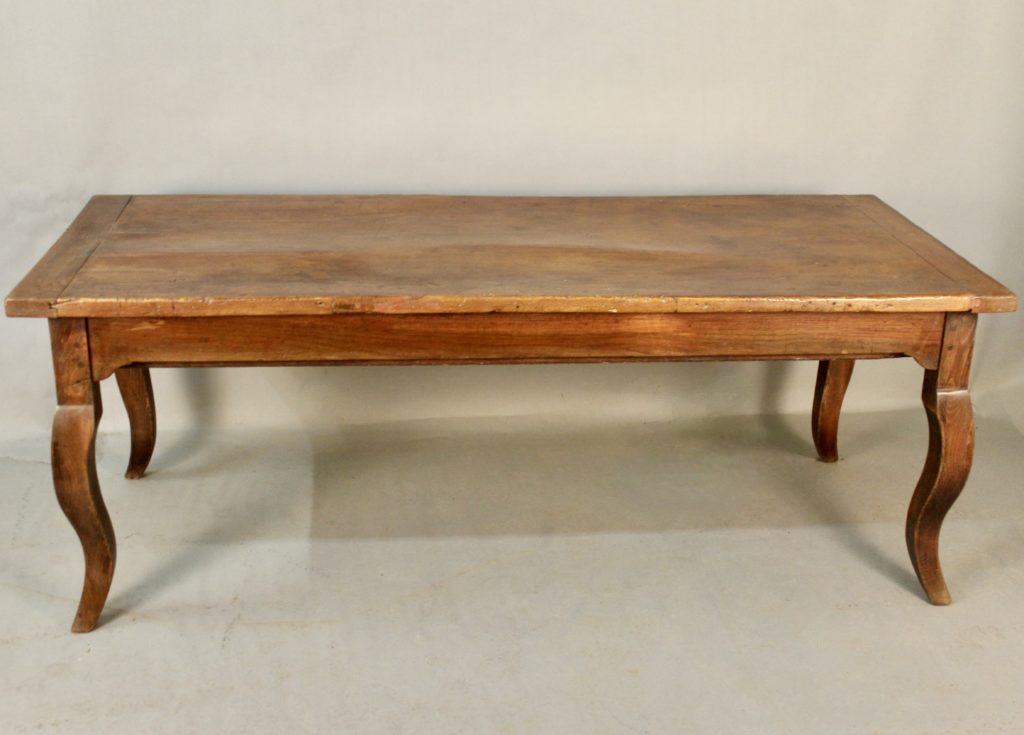 Table avec beaucoup de charme, très belle patine avec traces anciennes d’usage , notamment au niveau des extrémités du plateau .